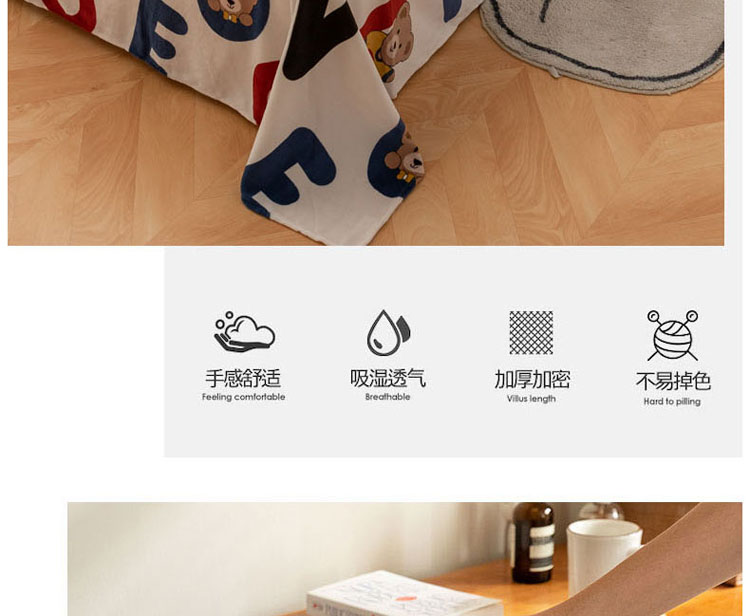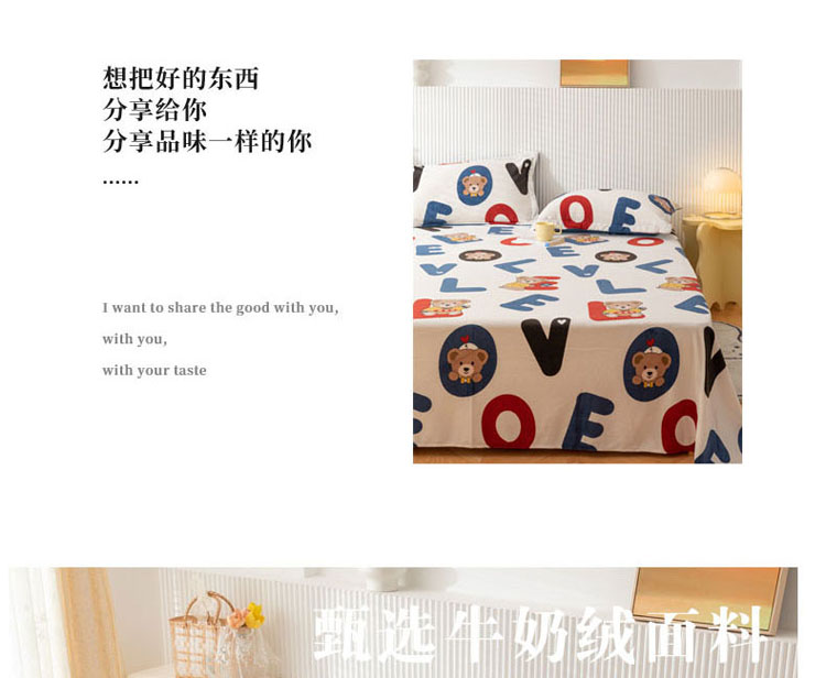 商品名称:梦家居 2021秋冬新款牛奶绒床单单品 字母小熊