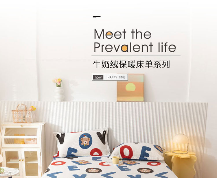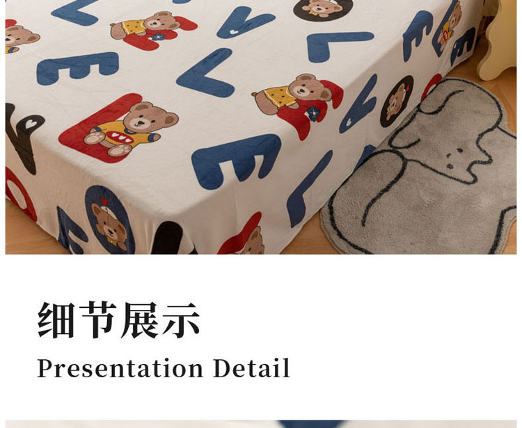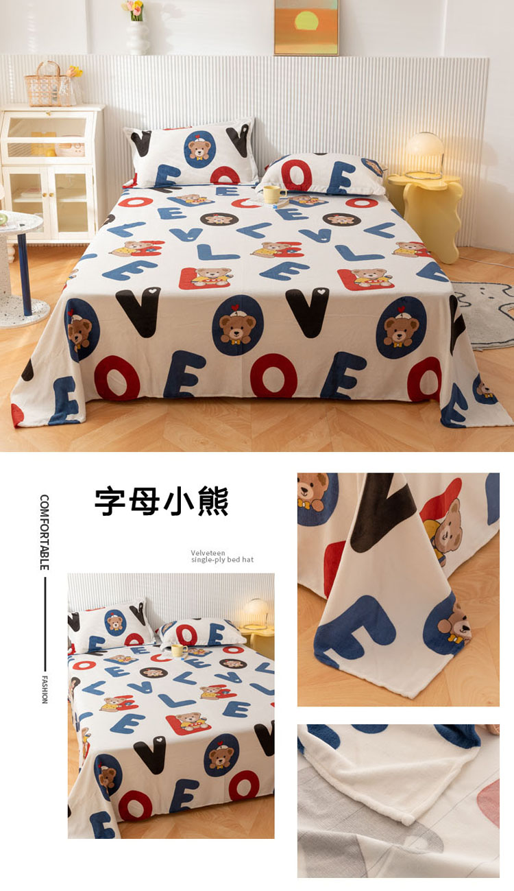 梦家居 2021秋冬新款牛奶绒床单单品 字母小熊