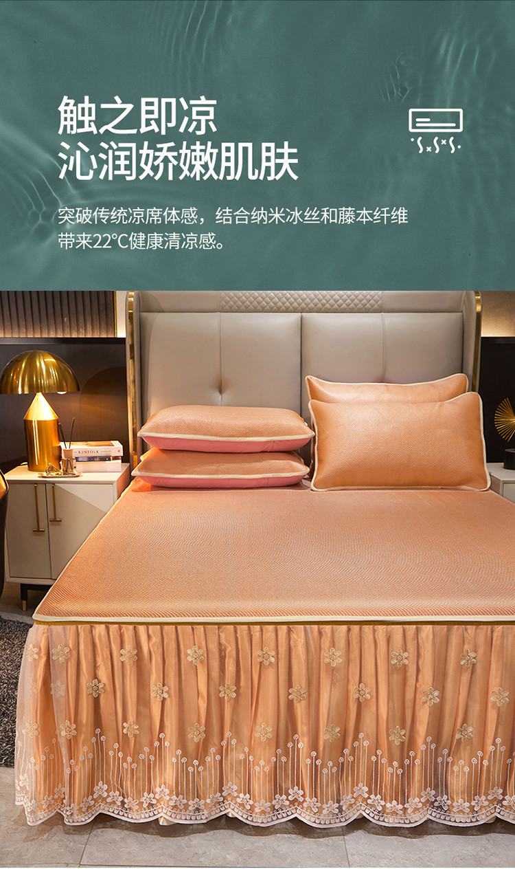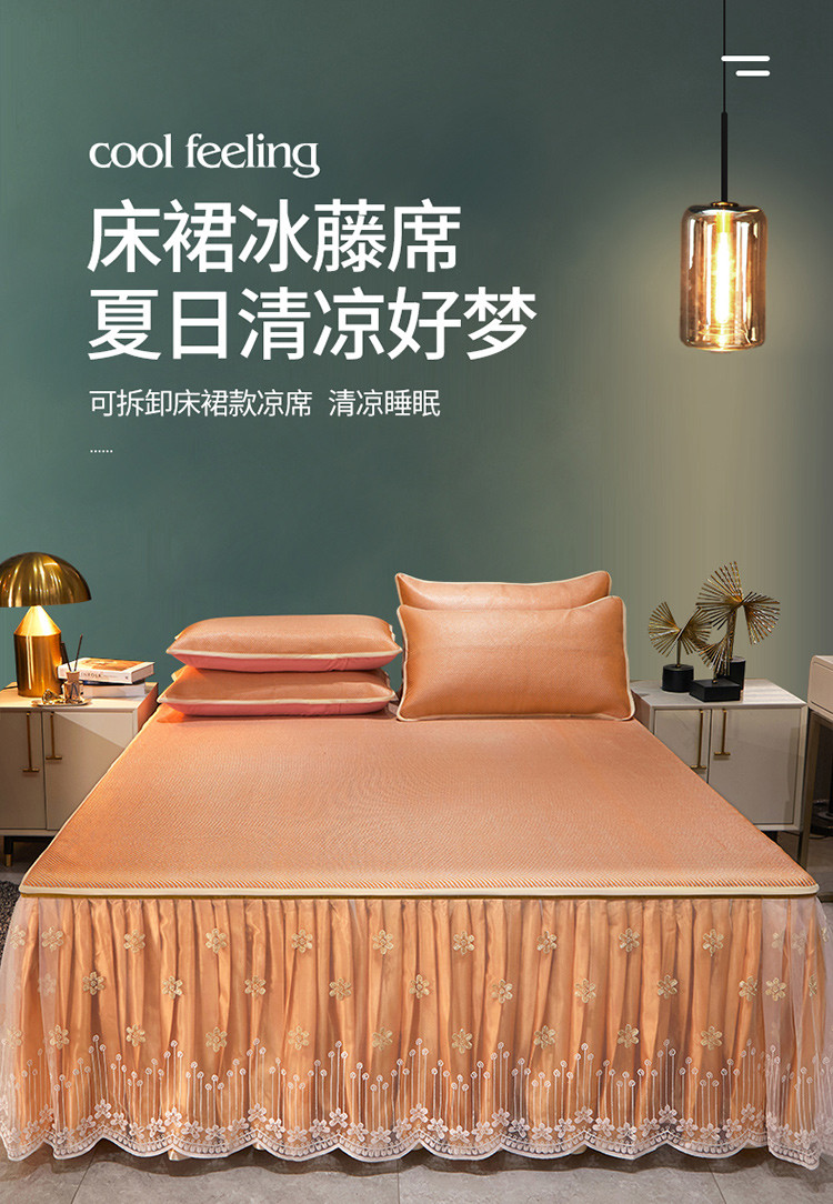商品名称:瑞宝 2025新款可拆卸床裙款冰藤席 魅惑橙
