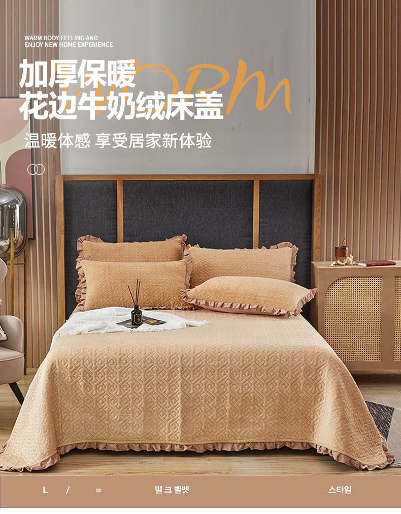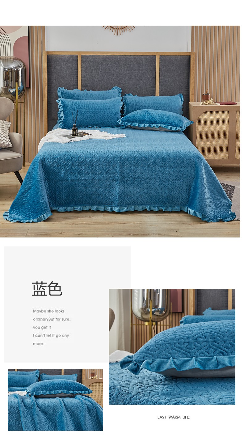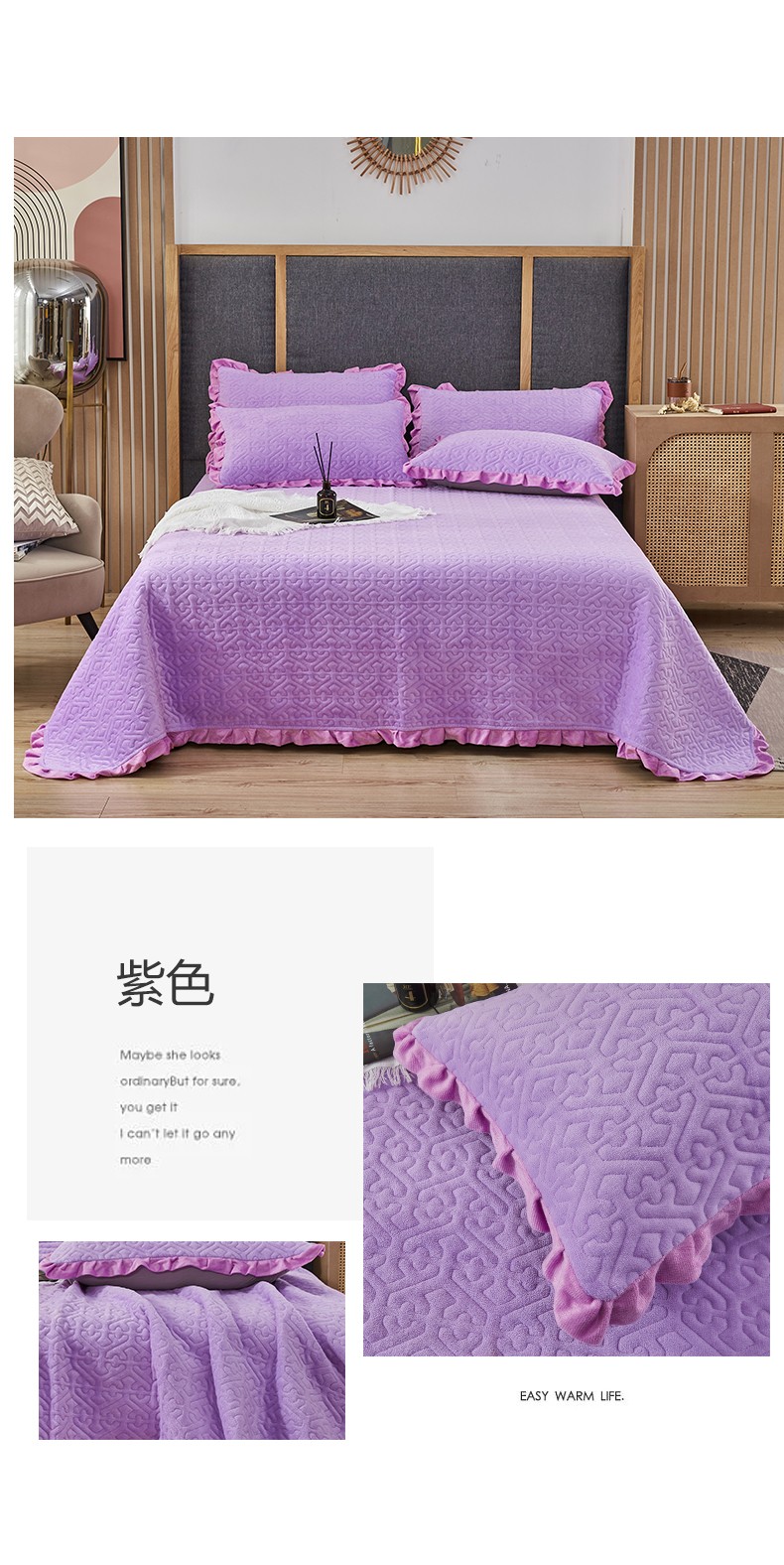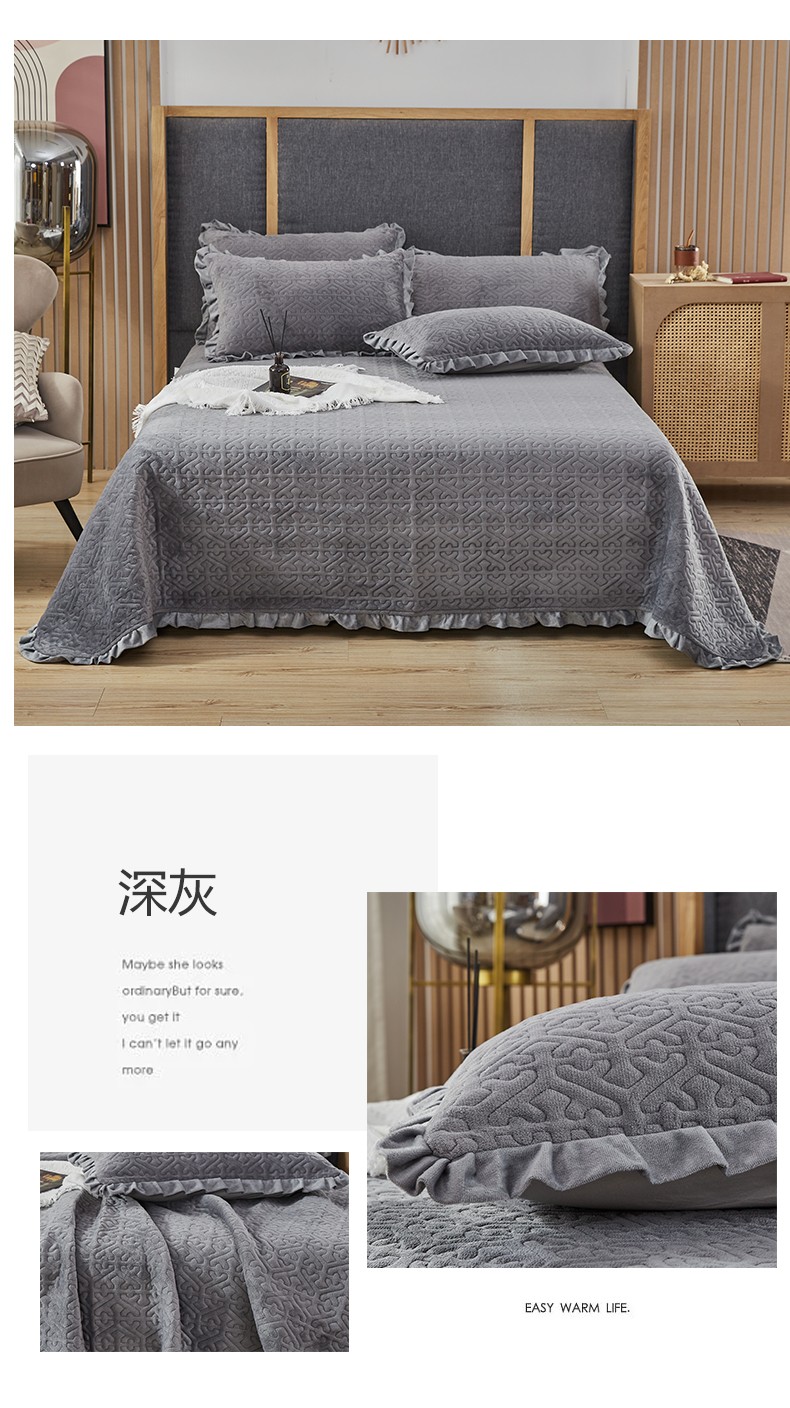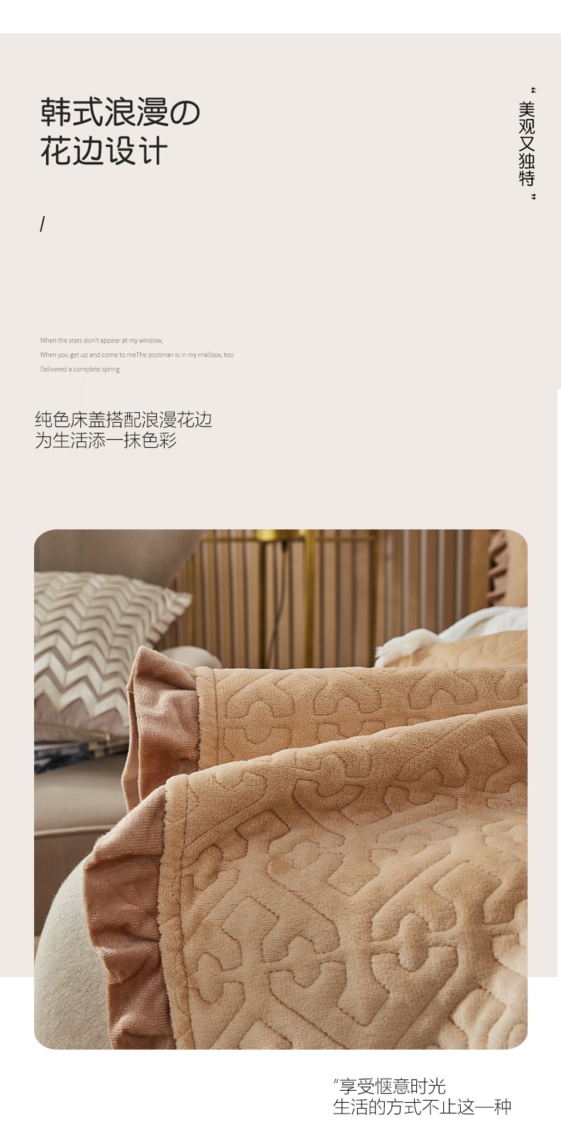 (总)佳梦家纺 2022新款牛奶绒纯色小花边床盖