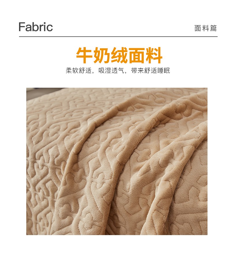 佳梦家纺轻奢提花绒四件套牛奶绒纯色消光压花宝宝绒被套 桔色,桔色