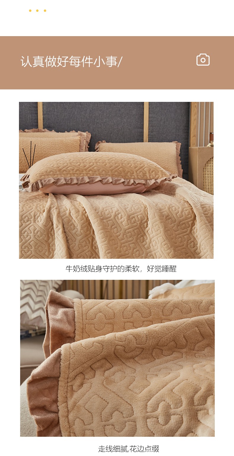 商品名称:(总)佳梦家纺 2022新款牛奶绒纯色小花边床盖