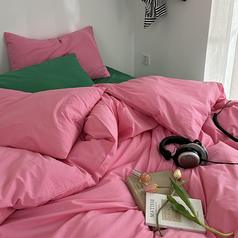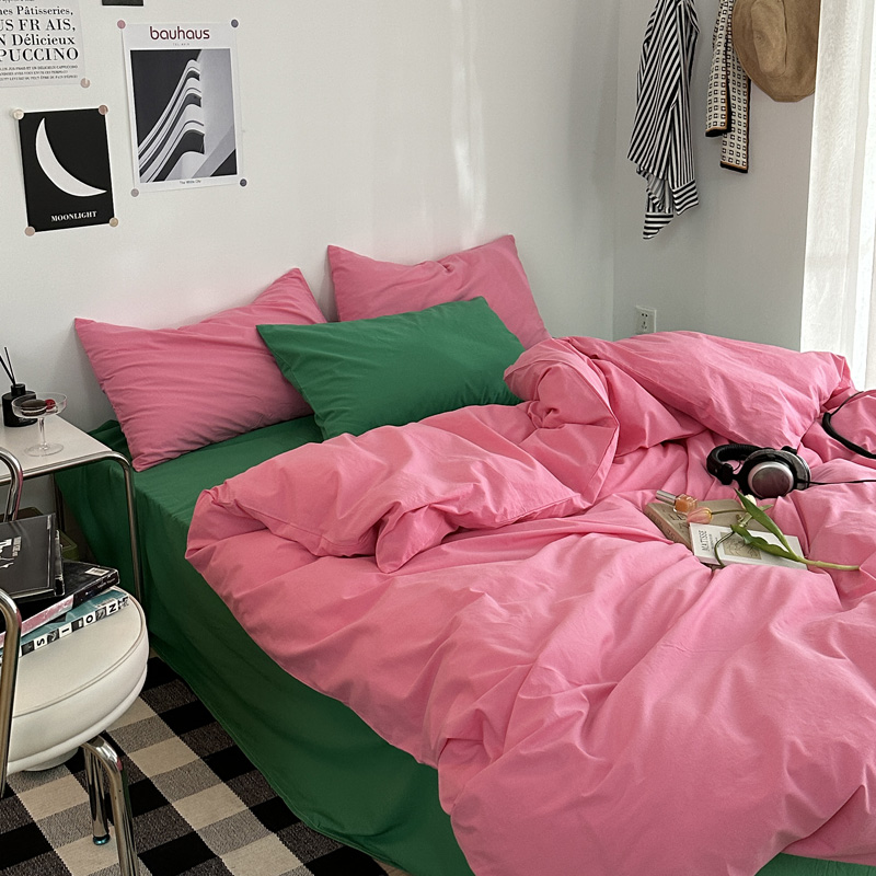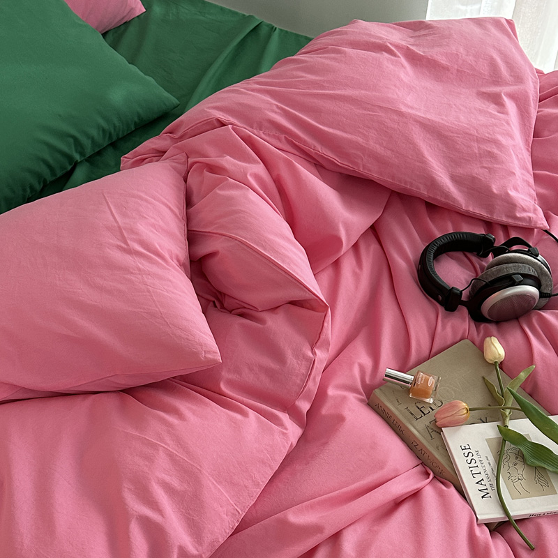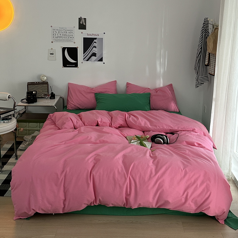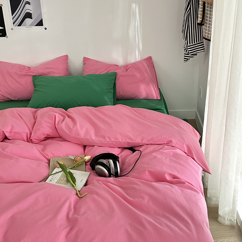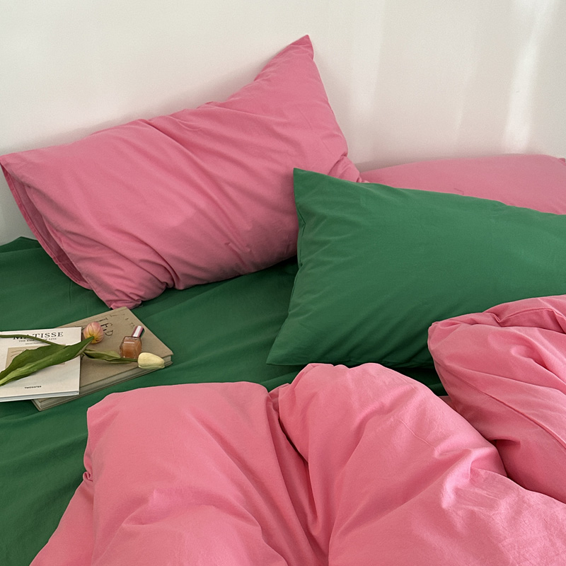 当前位置: 91家纺网 > 商品网购 > 床品套件 > 四件套 > 水洗棉四件套 > 艾沁 32支全棉水洗棉混搭四件套 蔷薇粉+绿