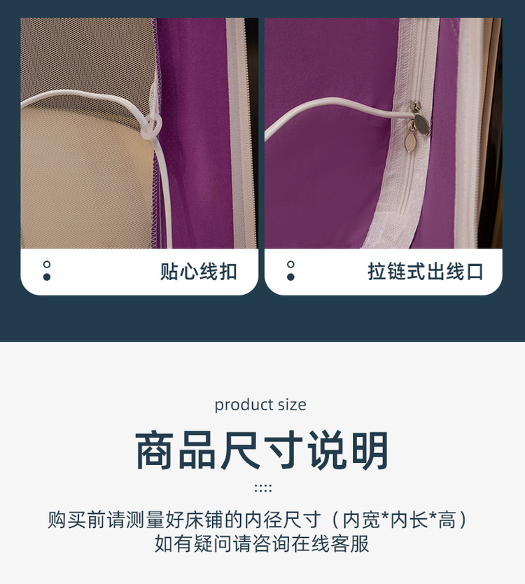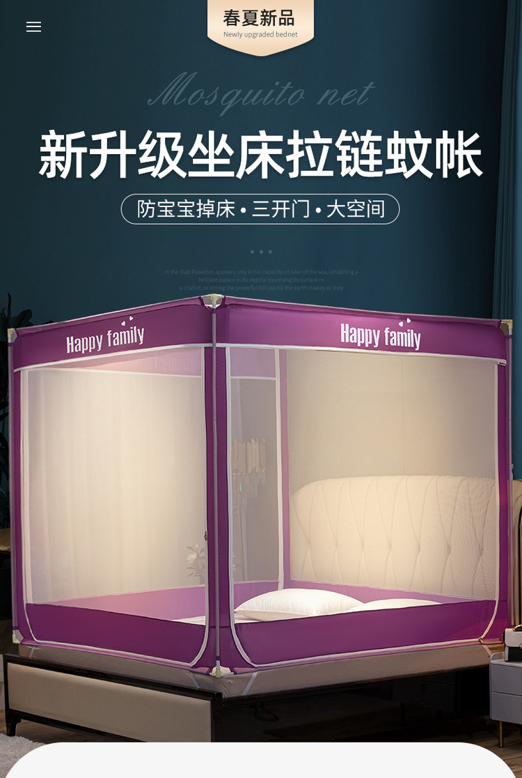 商品名称:兆星 2023新款外穿三开门方顶坐床蚊帐 高贵紫