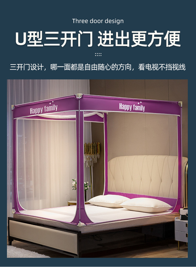 兆星 2023新款外穿三开门方顶坐床蚊帐 高贵紫