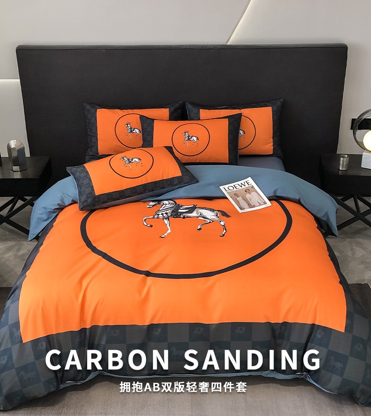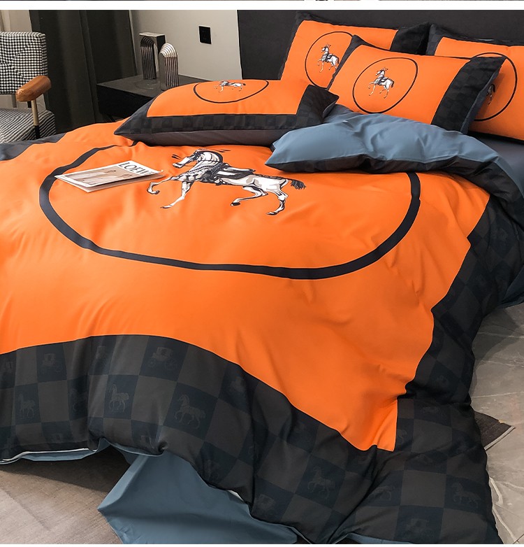当前位置: 91家纺网 > 商品网购 > 床品套件 > 四件套 > 全棉普通四件套 > 色鬼布艺 2023新款13376纯棉潮牌床单床笠款四件套 轻奢橘马