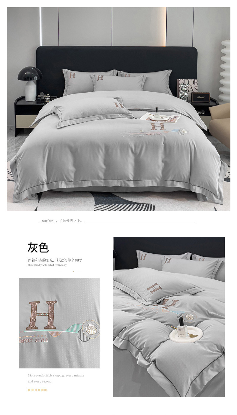 商品名称:靓生活 2023新款欧曼系列锦棉提花刺绣四件套 欧曼-灰色