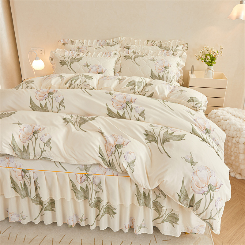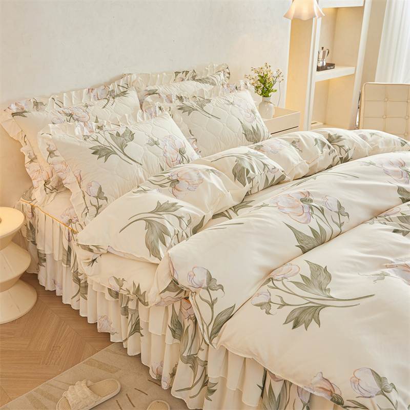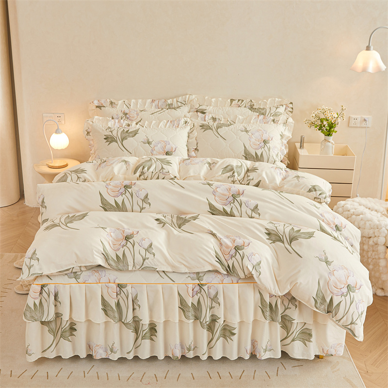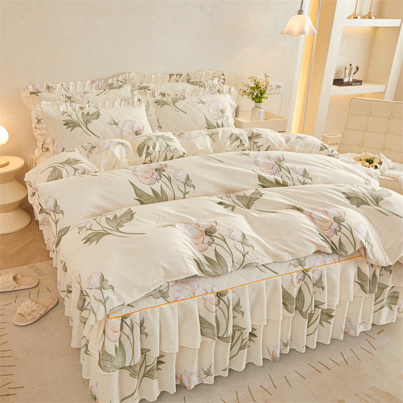当前位置: 91家纺网 > 商品网购 > 床品套件 > 四件套 > 全棉普通四件套 > 雨田 2023新款夹棉床裙 雪莲花