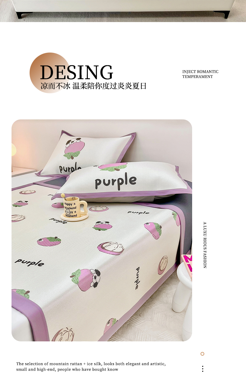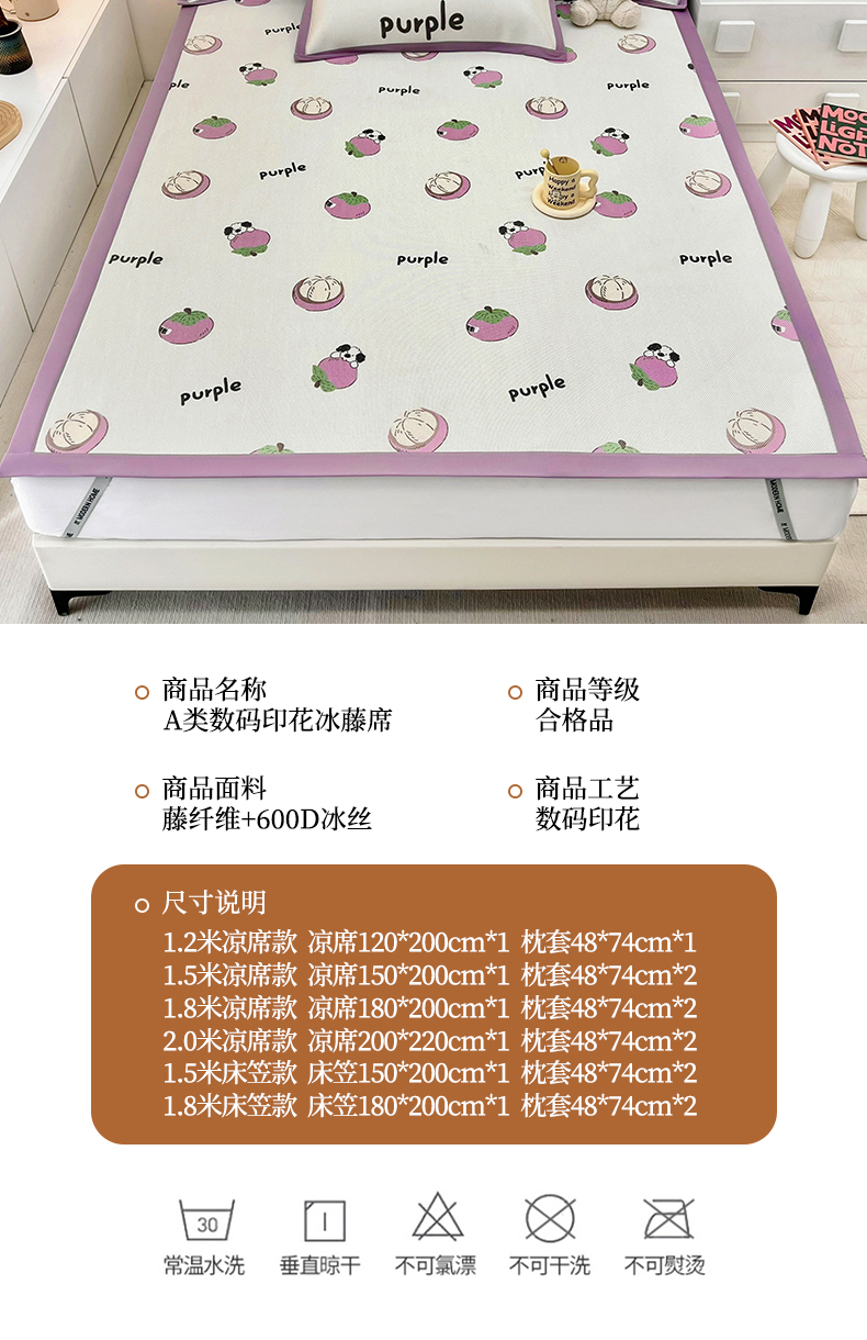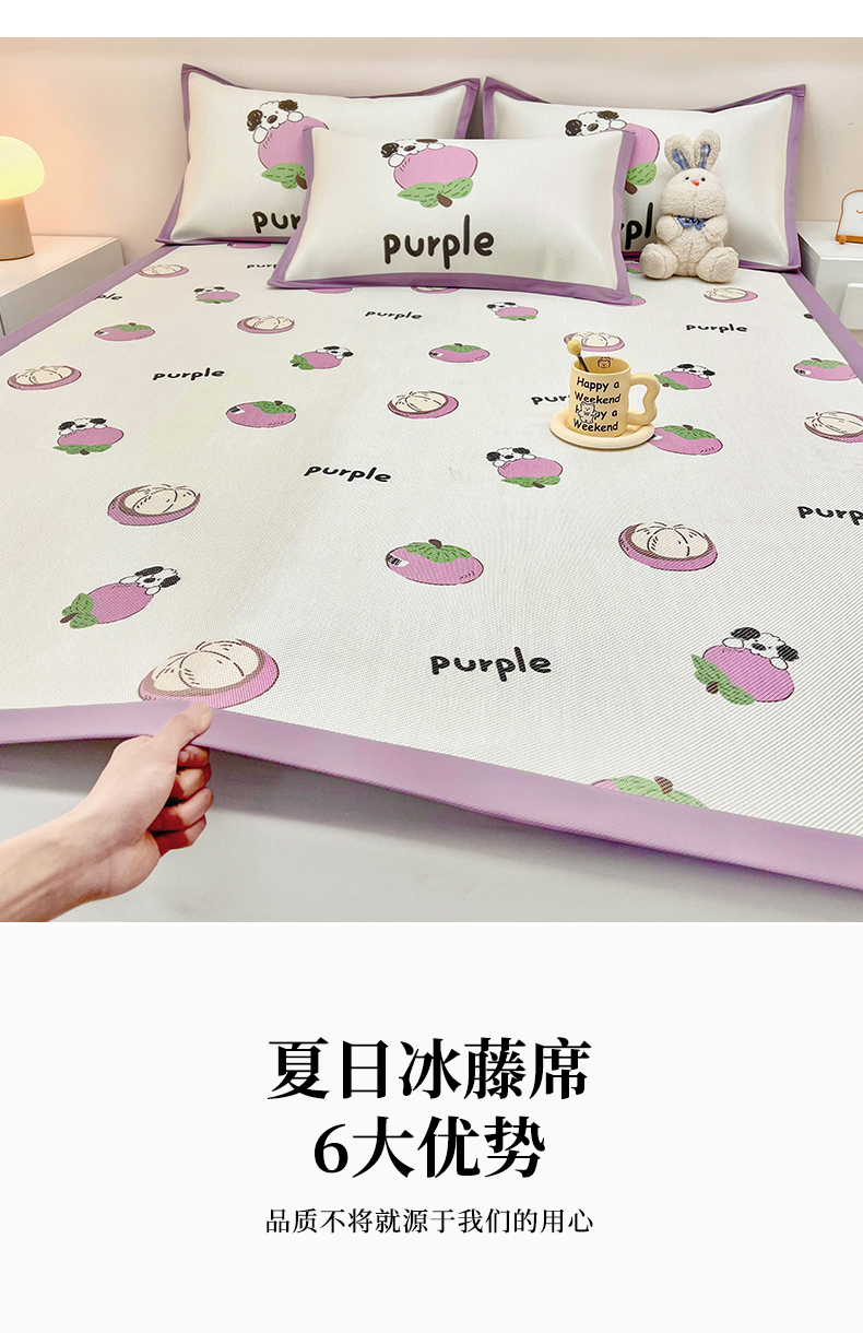 当前位置: 91家纺网 > 商品网购 > 床上用品 > 凉席 > 藤席 > 全季家居 2024新款5A抗菌小清新数码印花冰藤席 山竹(床席款)