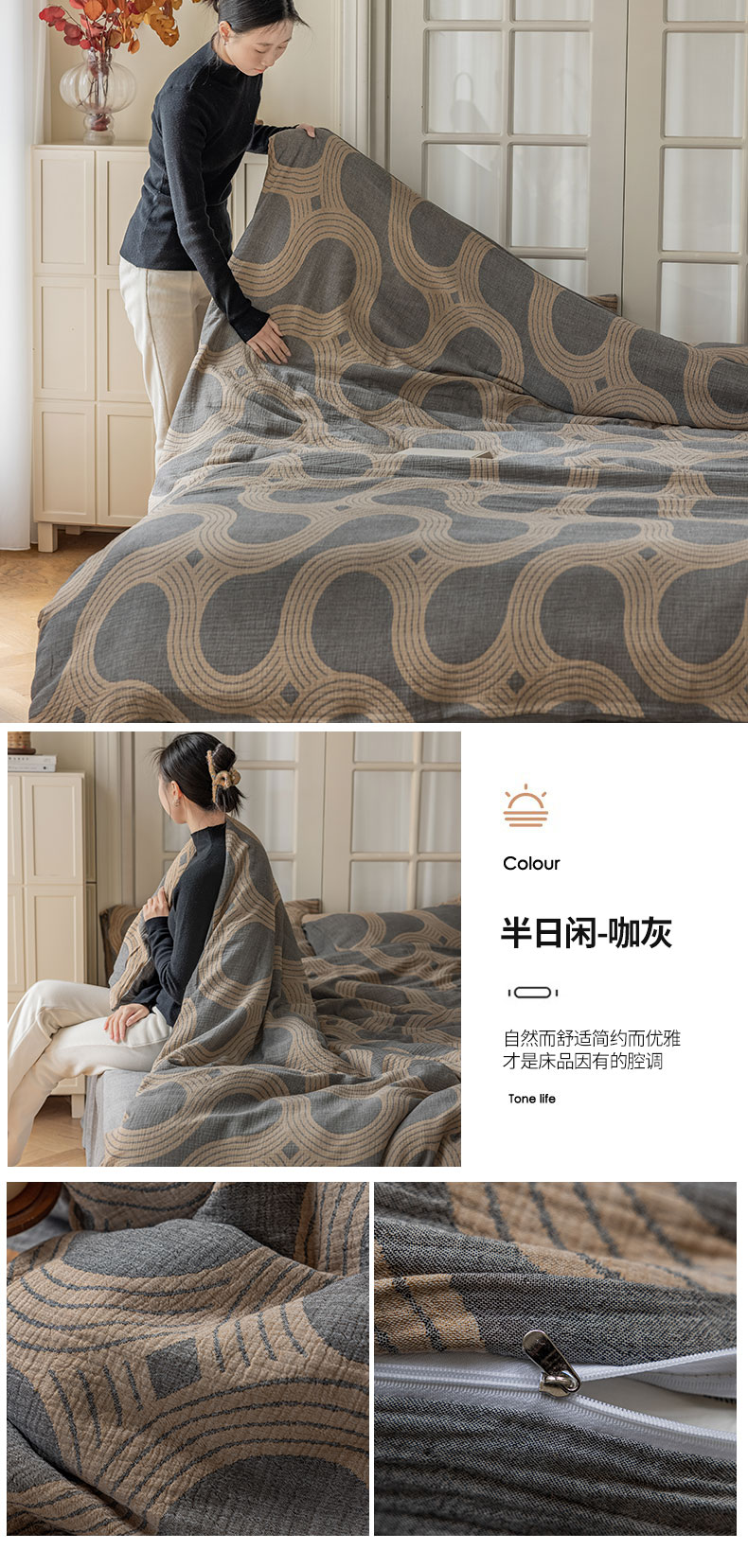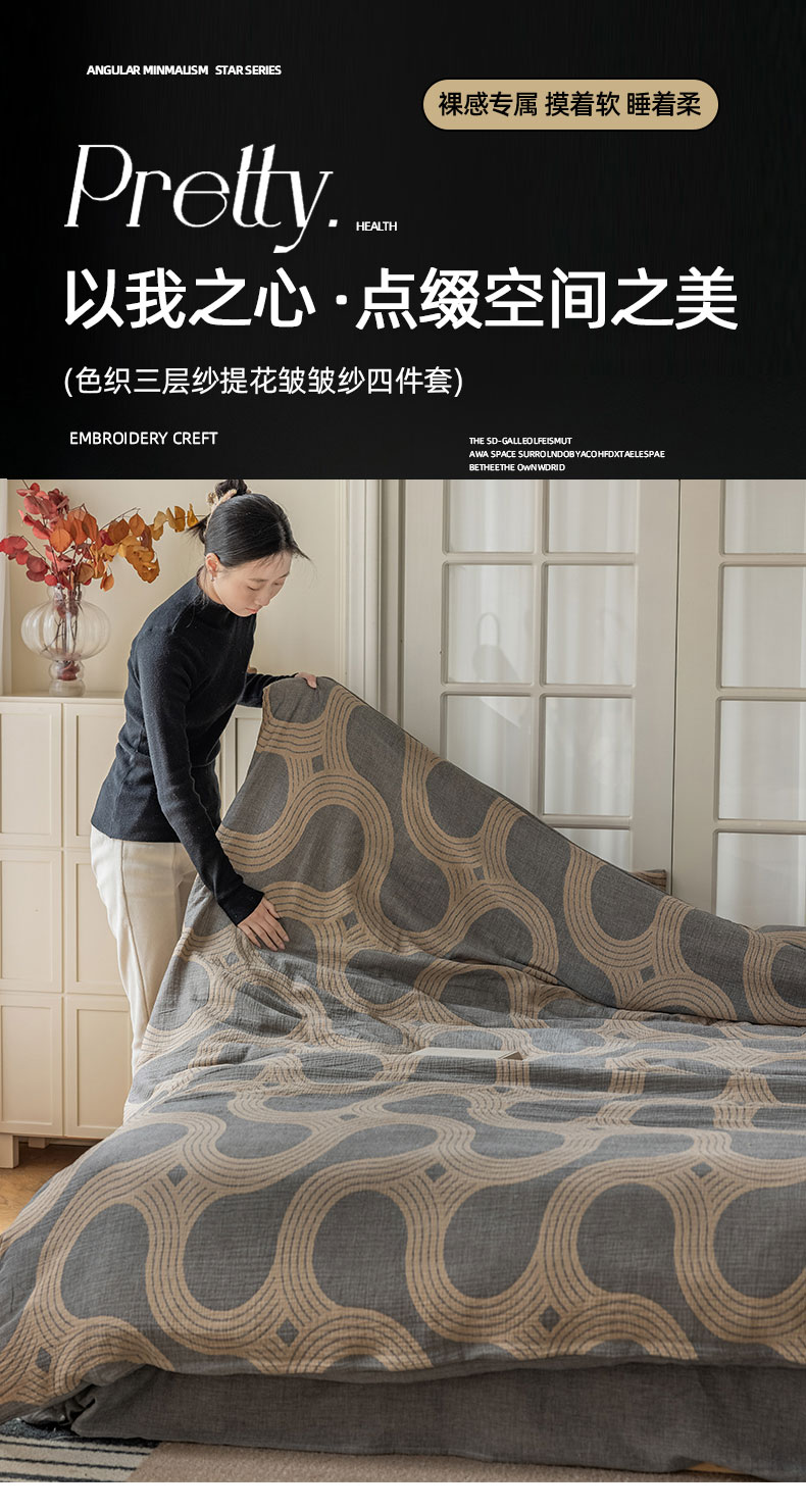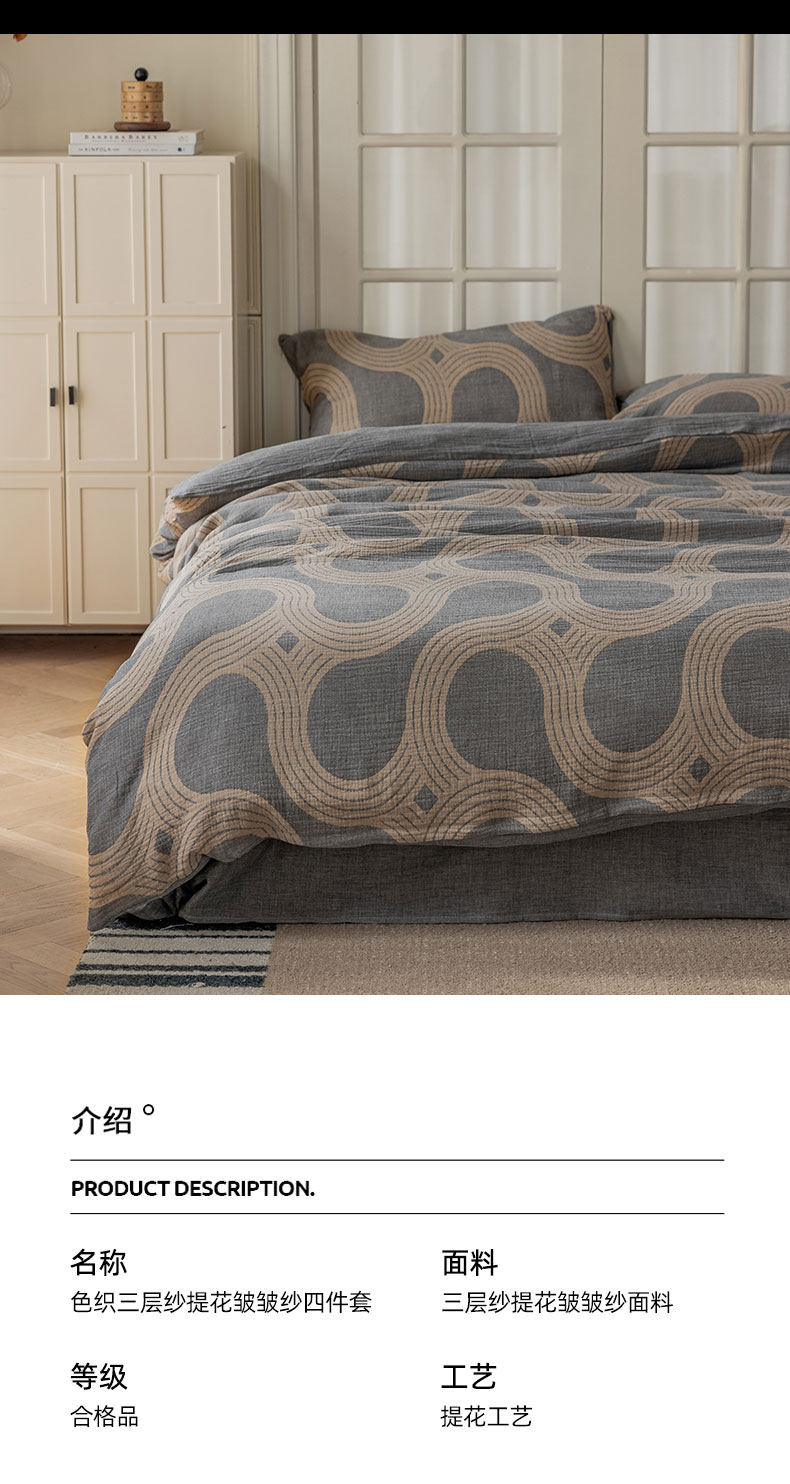 商品名称:山舍家居 2024新款三层纱提花四件套半日闲 半日闲咖灰