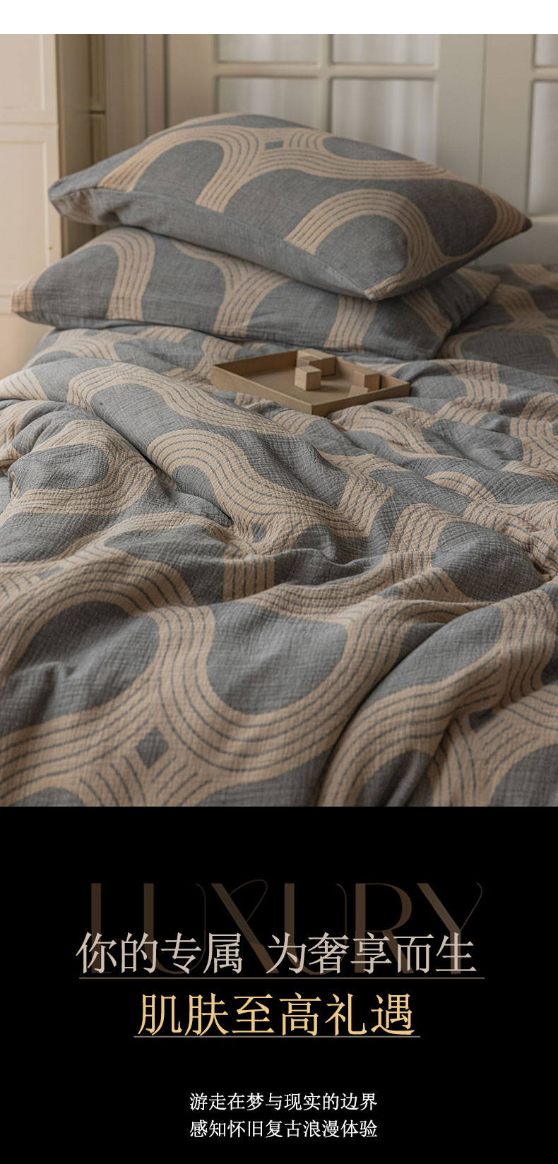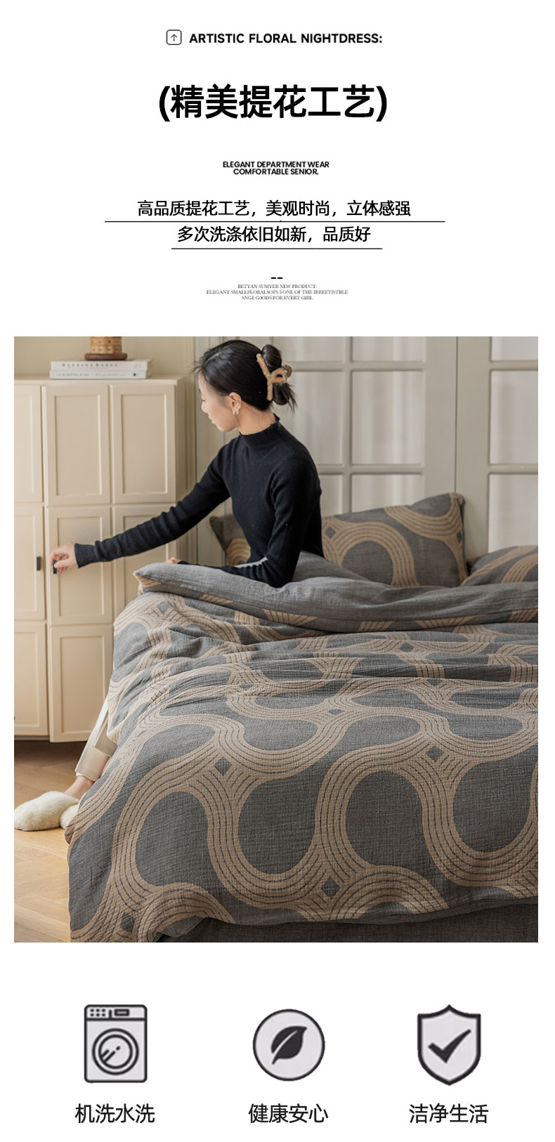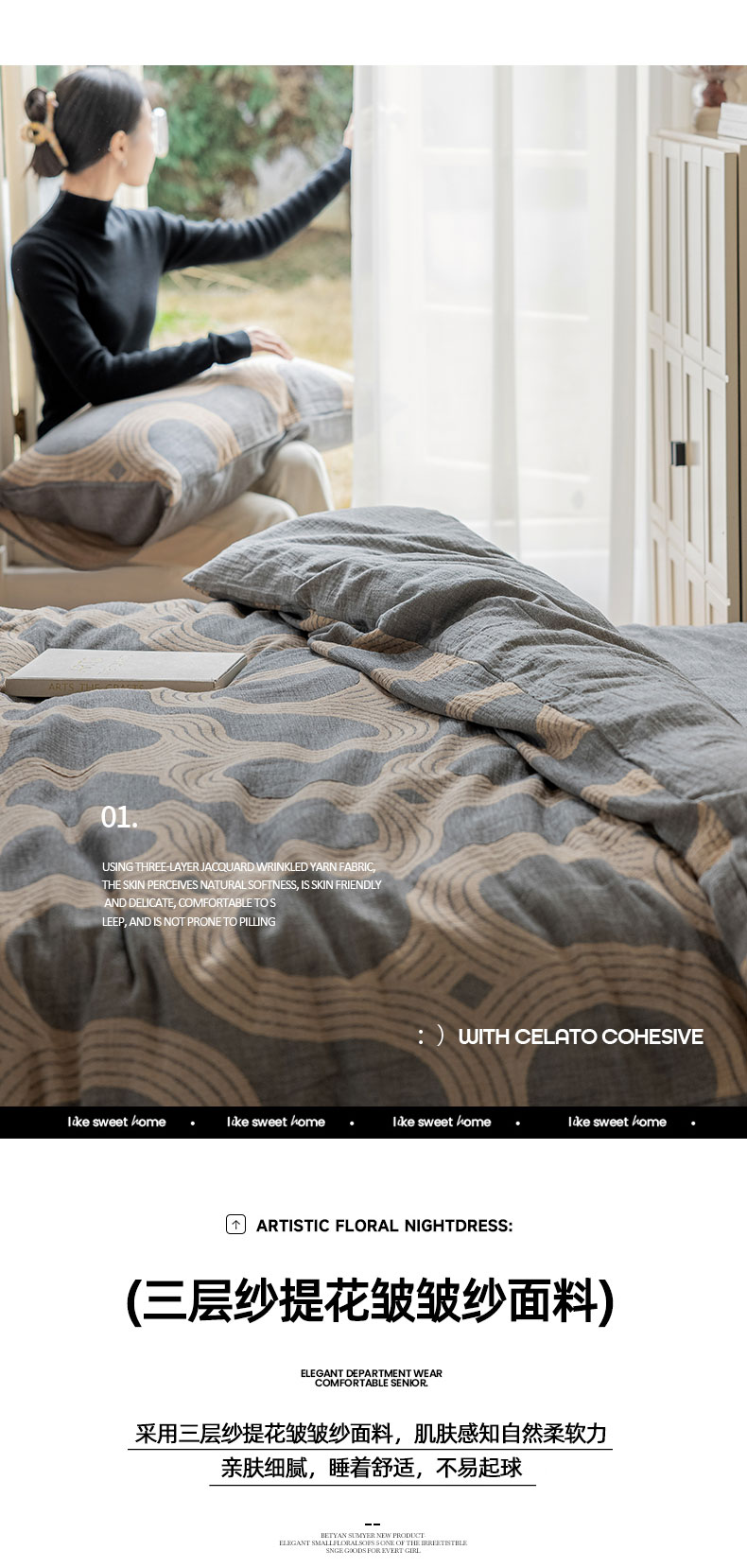 商品名称:山舍家居 2024新款三层纱提花四件套半日闲 半日闲咖灰
