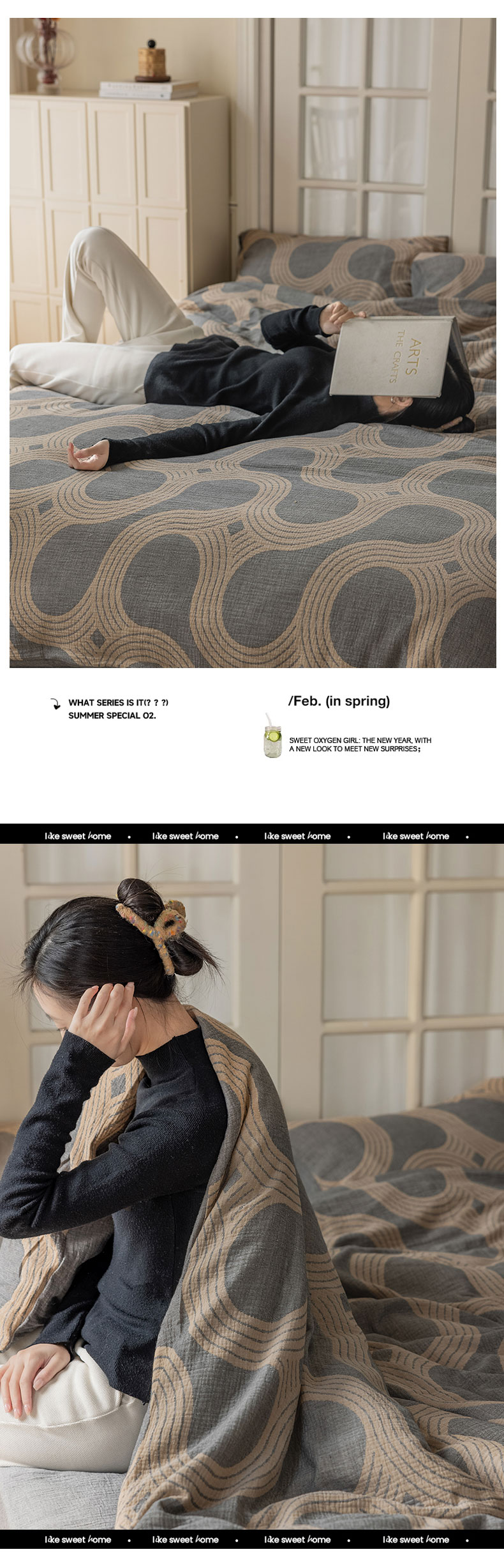 (总)山舍家居 2023新款美拉德色系双层纱四件套,泥灰色,巧克力棕,太妃糖,杏仁色,夜阑,燕麦,沙茶栗
