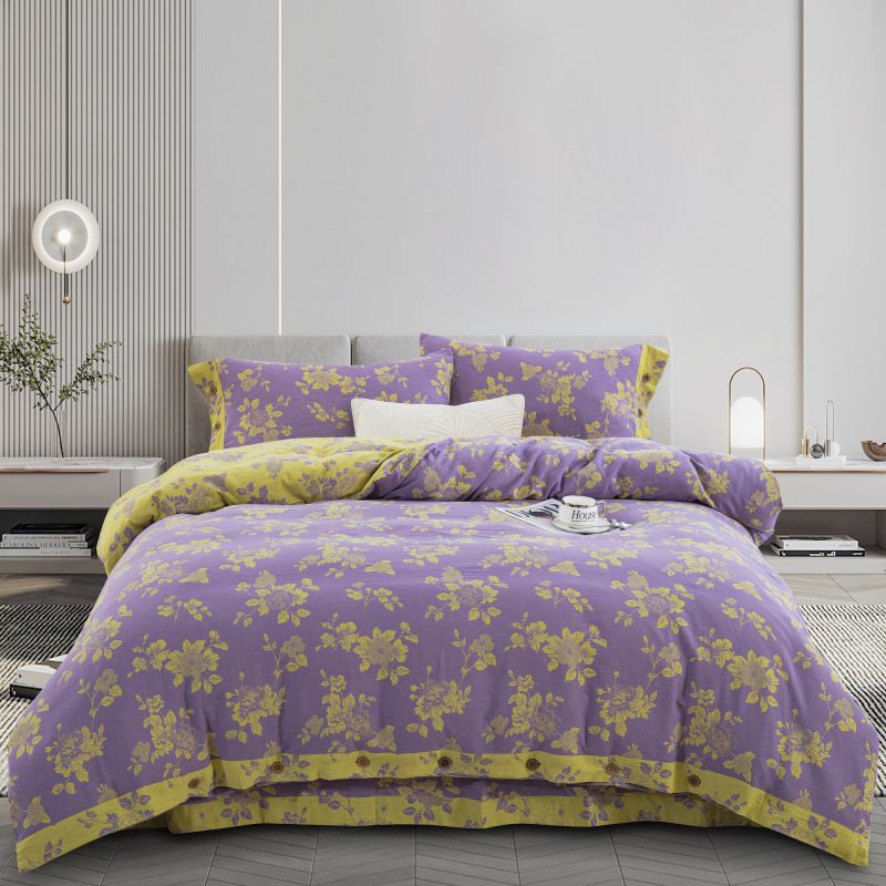 (总)双层纱家居 2024新款素色四件套,星光灿烂灰,幸福星黄,幸福星绿,幸福星浅紫