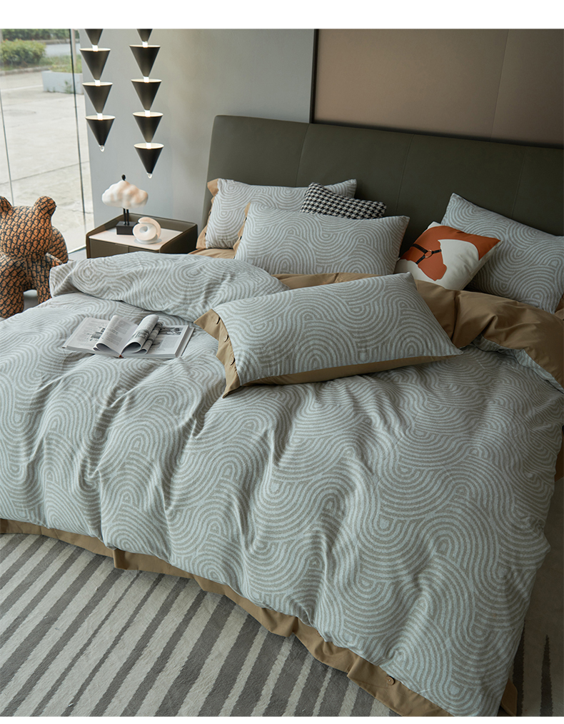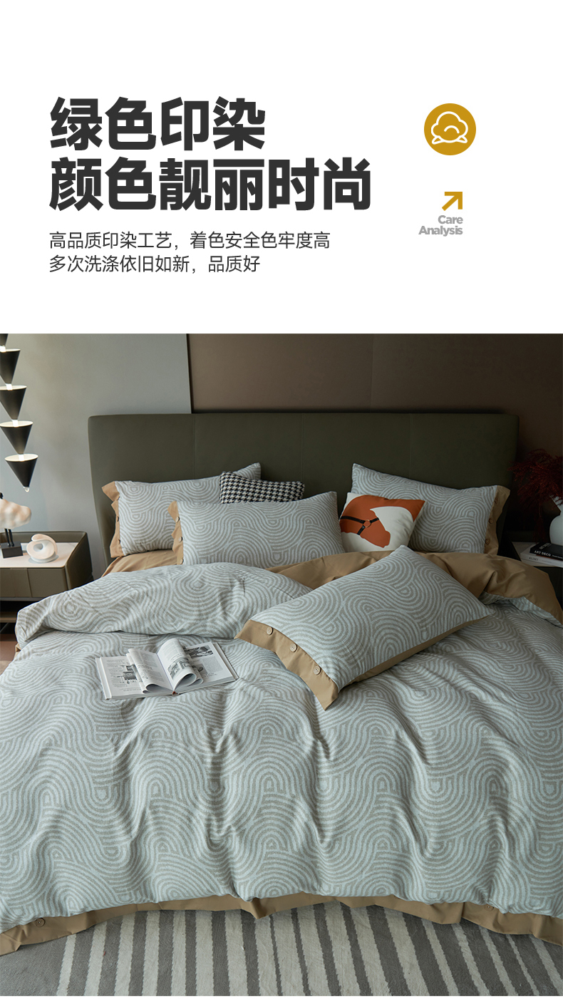 沐白家居 2025新款全棉生态磨毛印花四件套-纽扣工艺款 维诺-灰