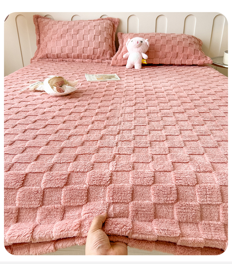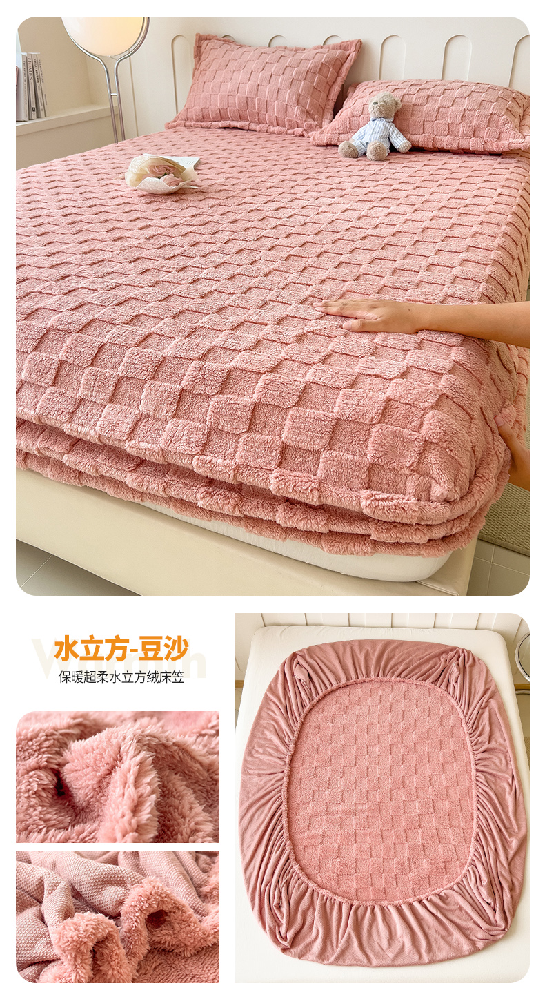 商品名称:世纪绒品 2025直播爆款牛奶绒塔芙绒纯色雕花床笠 水立方-豆沙
