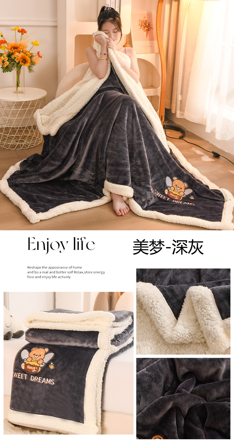 当前位置: 91家纺网 > 商品网购 > 毛毯休闲毯绒毯 > 毛毯 > 2025新款毛毯AB版牛奶绒+羊羔绒毯子复合多功能午睡毯 美梦-深灰