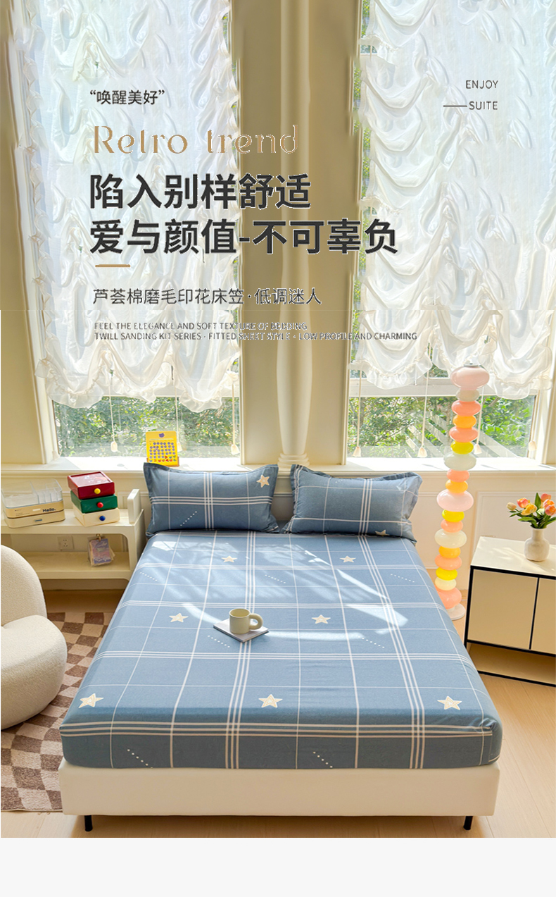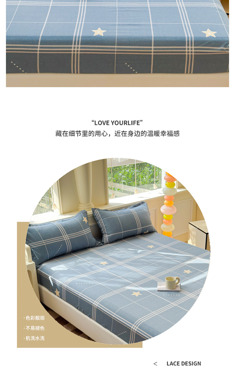 佑佳家纺 2025年新款铂金棉芦荟棉单床笠,有配套枕套「支持定制各种尺寸」 万星如一