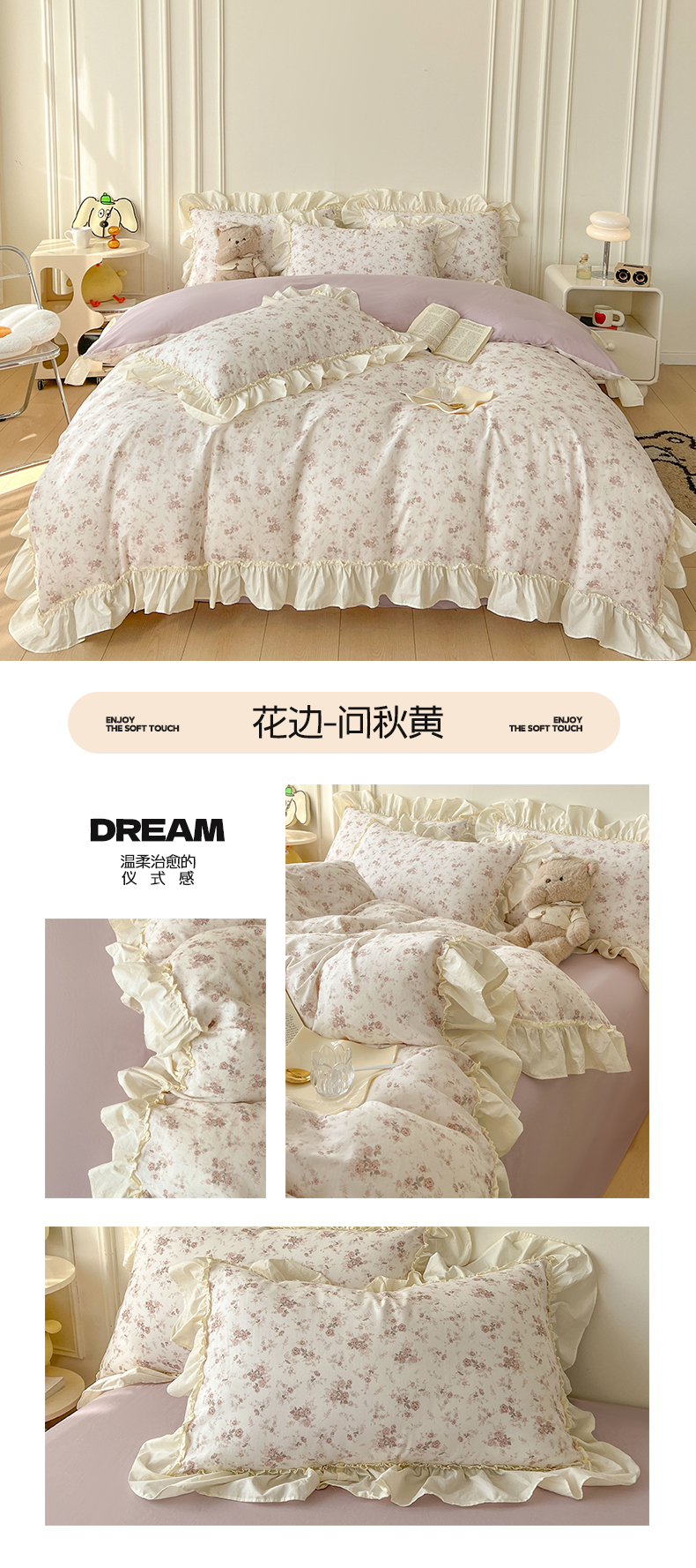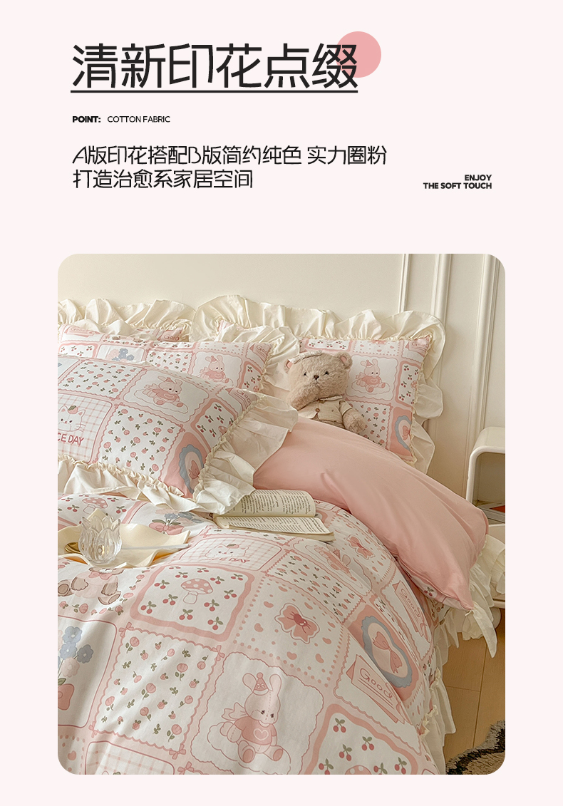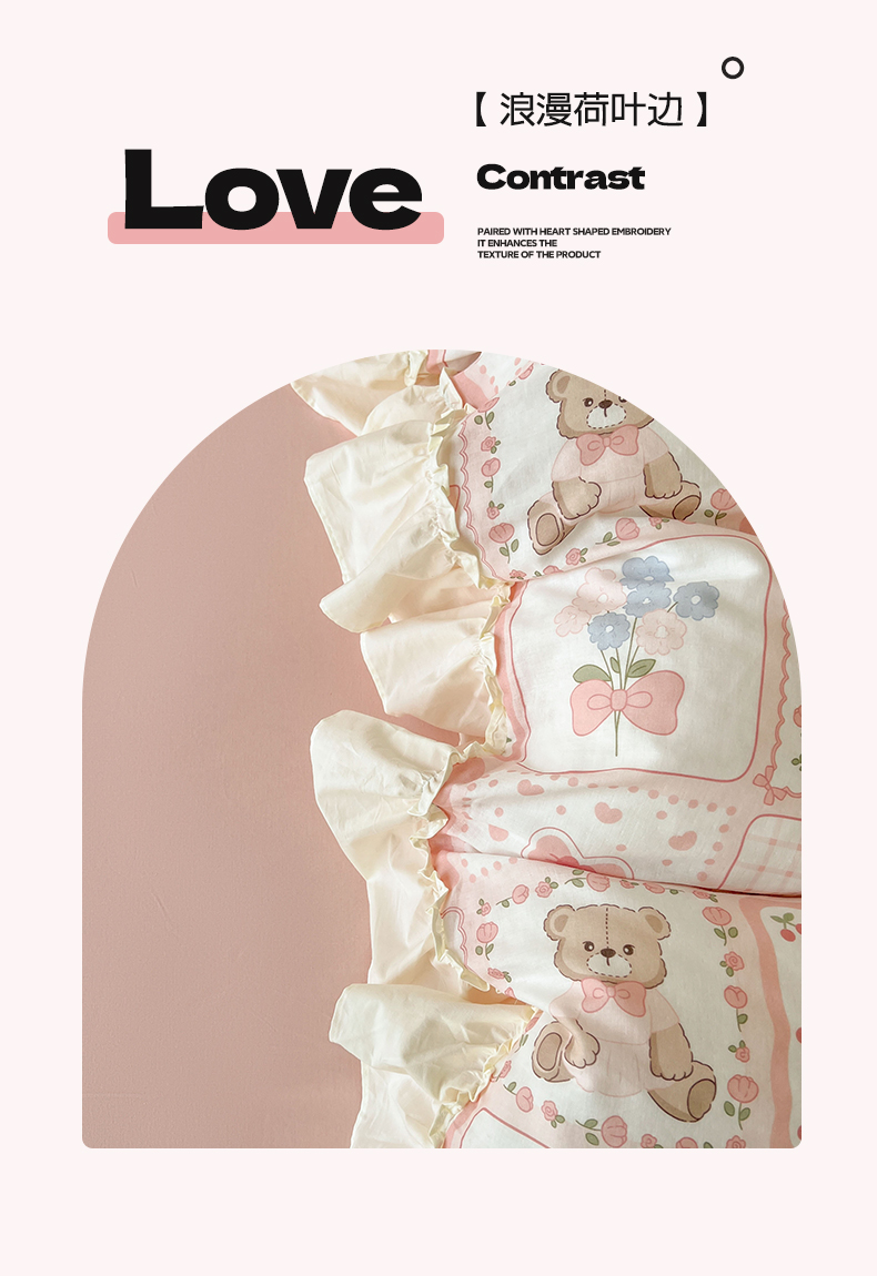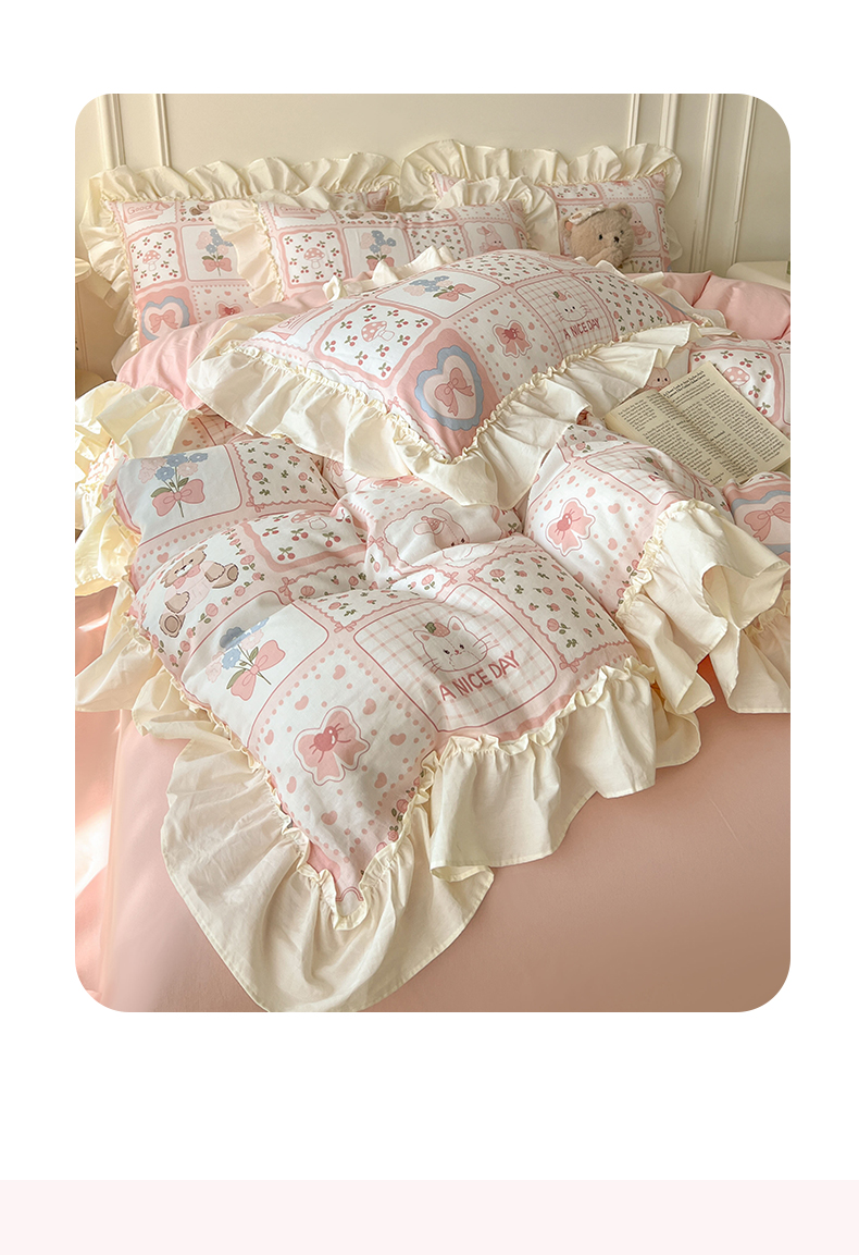 当前位置: 91家纺网 > 商品网购 > 床品套件 > 四件套 > 双层纱四件套 > 涵宸家纺 2025新款A类全棉双层纱荷叶花边四件套 花边-粉黛