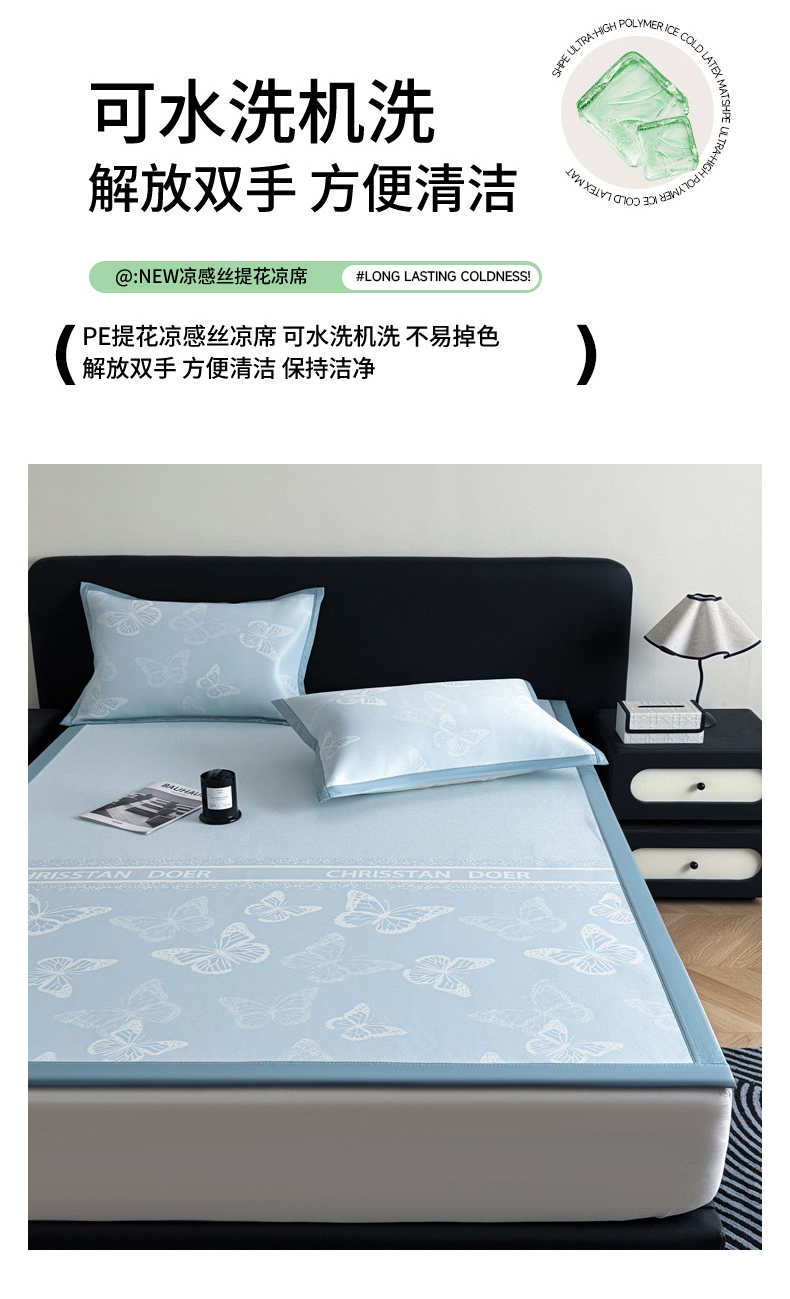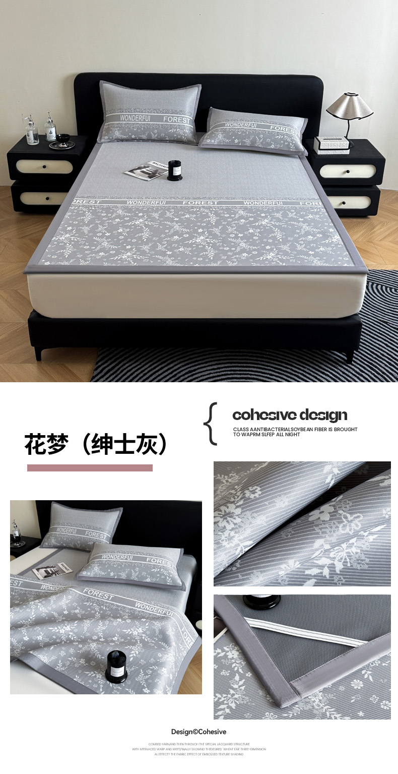 商品名称:九花鹿 2025新款A类PE凉感提花冰丝凉席软凉席可水洗可机洗 西里(绅士灰)