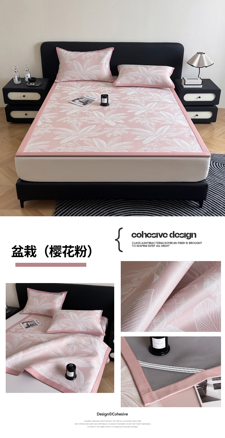 九花鹿2024新款A类大版碳光冰丝凉席床笠款三件套四件套,大版床笠款-甜心草莓