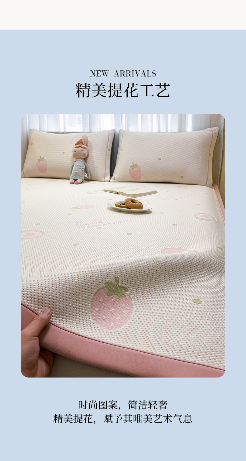 • 91家纺网 家纺一手货源 找家纺 全季家居 2025新款A类乙纶PE卡通系列凉豆豆席凉席席子 草莓甜心-水绿-床席款