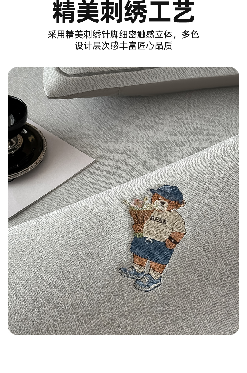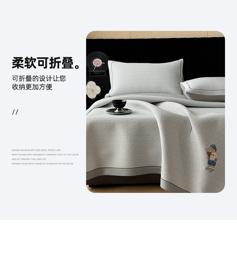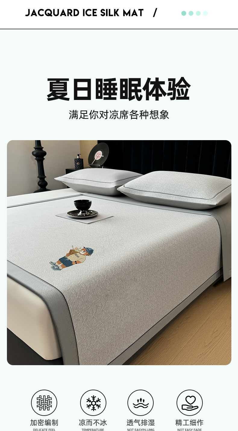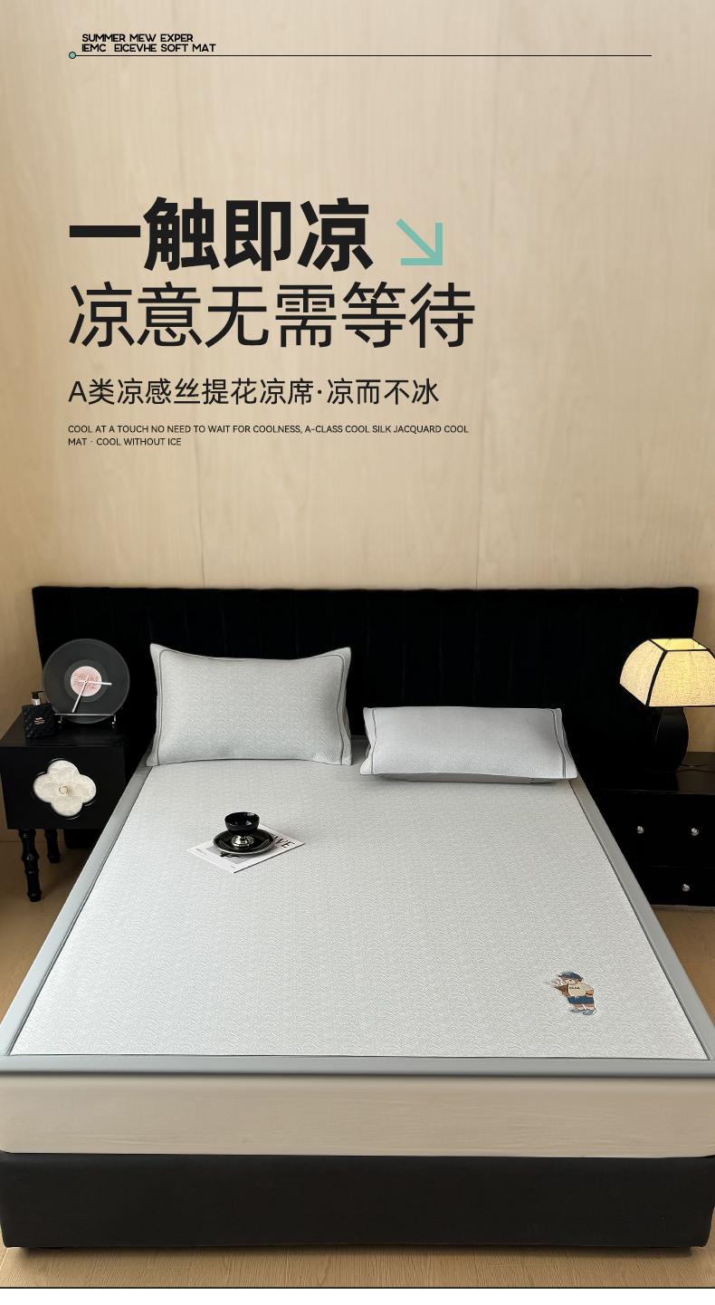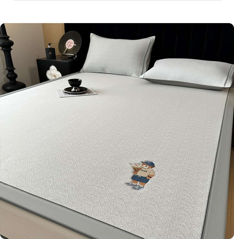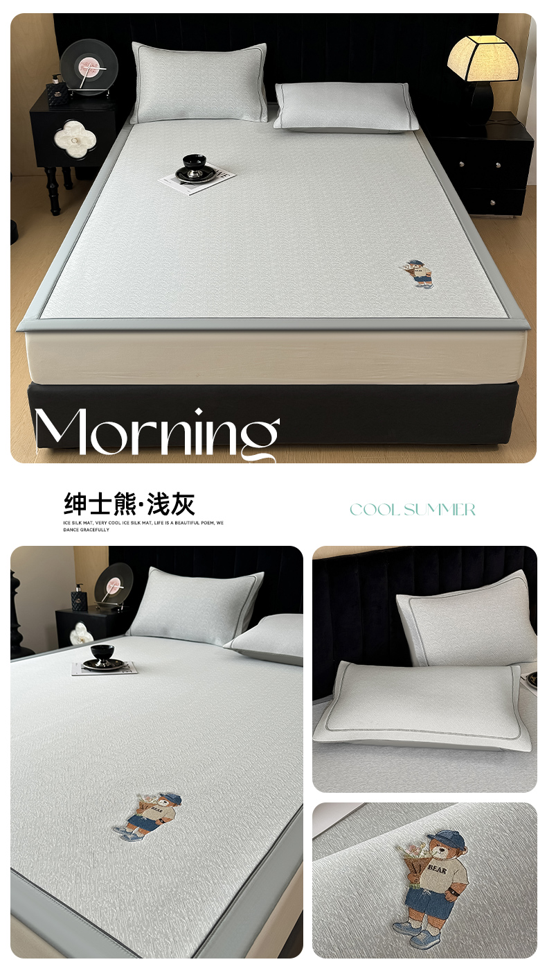 • 91家纺网 家纺一手货源 找家纺 全季家居 2025新款5A乙纶全PE绅士熊系列凉感软凉席席子 浅灰 床席
