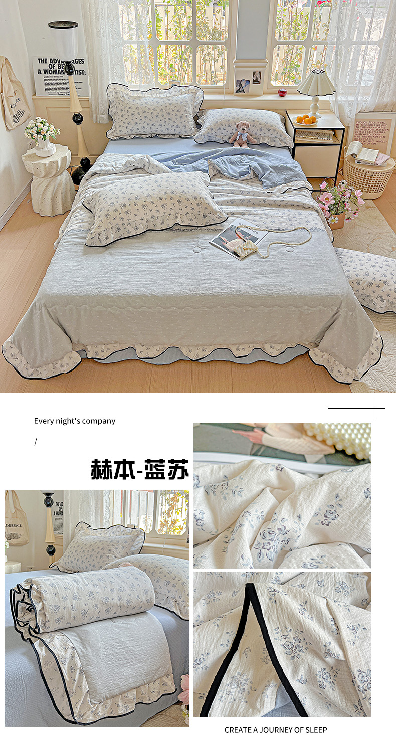 仟网汇 2025新款云感赫本风皱皱纱夏被四件套 赫本-蓝苏