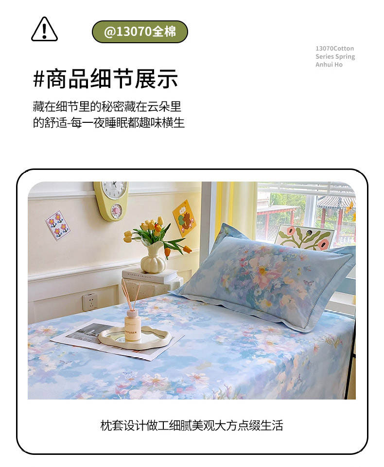 商品名称:春皖家纺 2025新款学生季全棉纯棉13070印花单床单 床单单件 玉蝶逐香