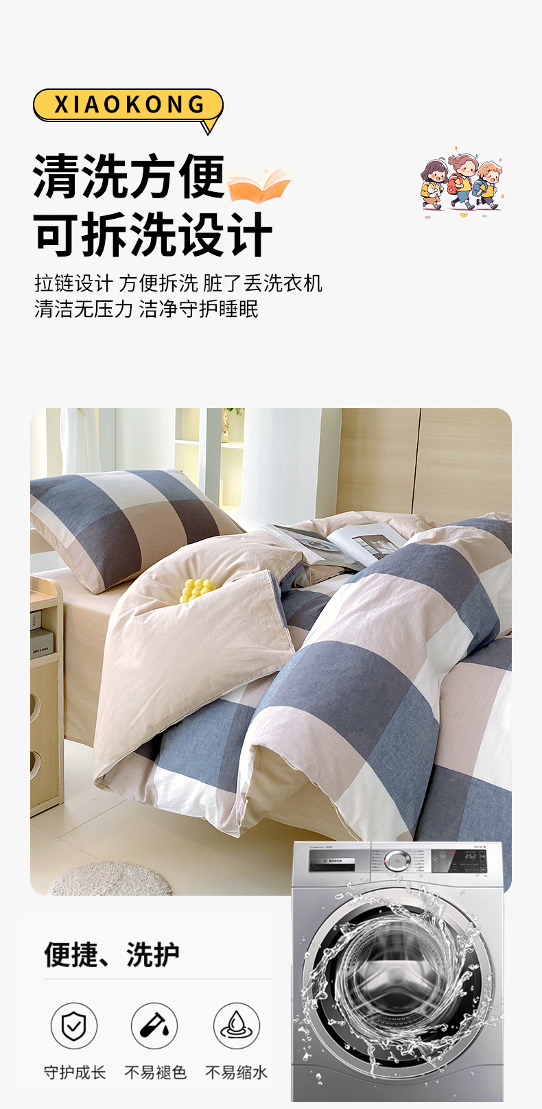 当前位置: 91家纺网 > 商品网购 > 床品套件 > 四件套 > 春皖家纺 2025新款AB棉全棉亲肤水洗棉学生三件套四件套 素雅-蓝大格