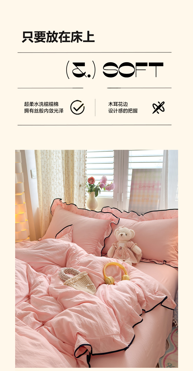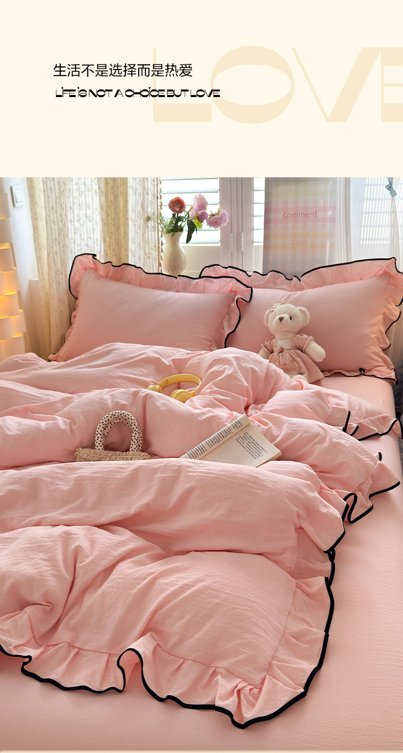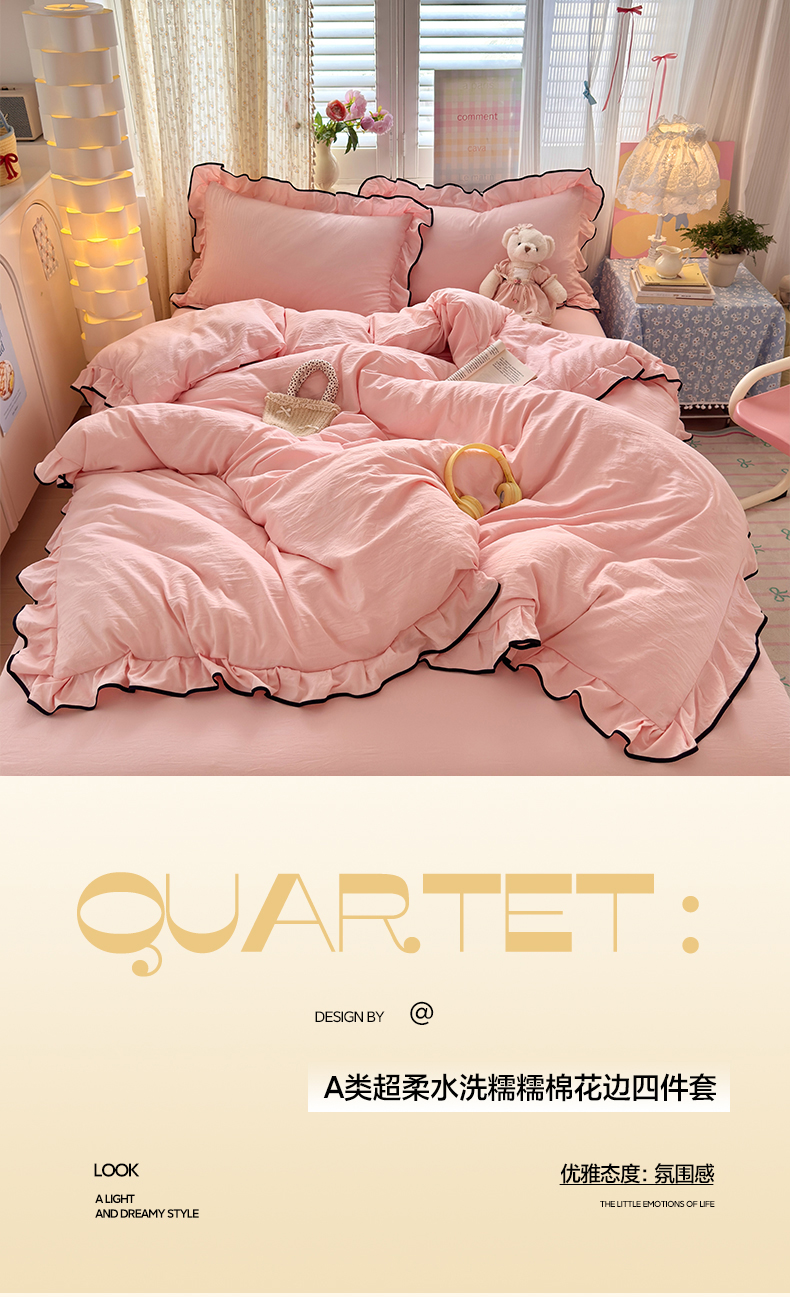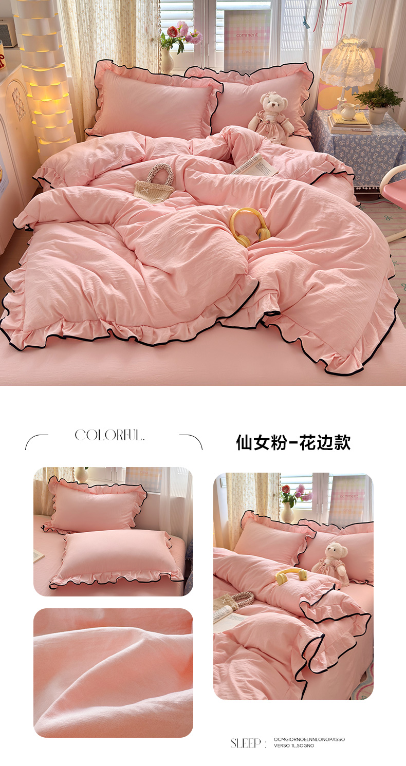 当前位置: 91家纺网 > 商品网购 > 床品套件 > 四件套 > 其它四件套 > 喜颜 2025新款爆款超柔水洗糯糯棉花边四件套学生宿舍单人三件套 仙女粉-花边款