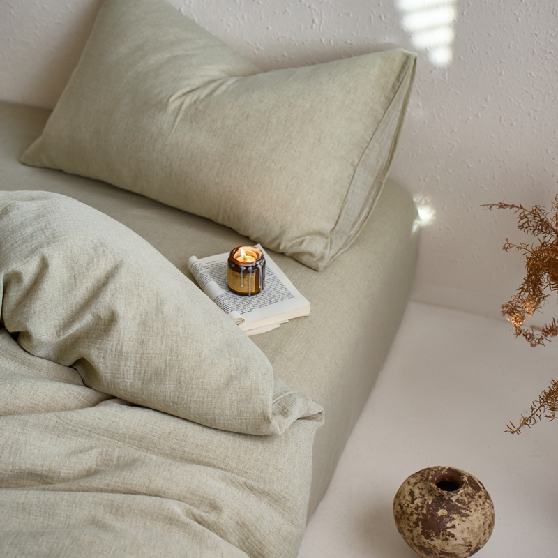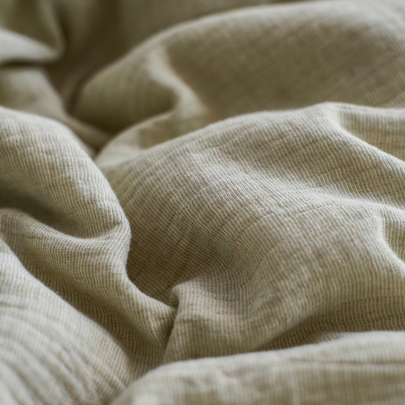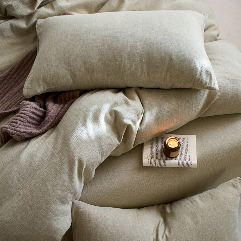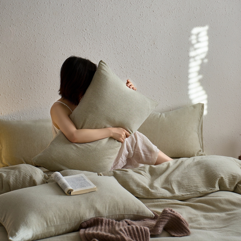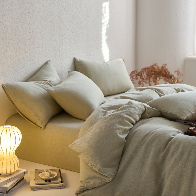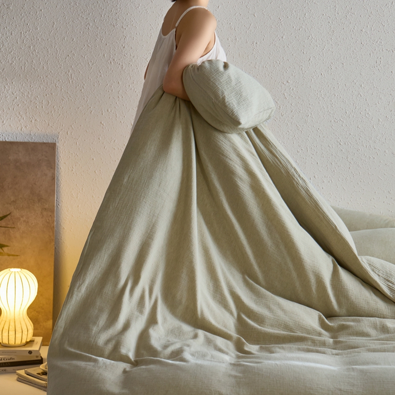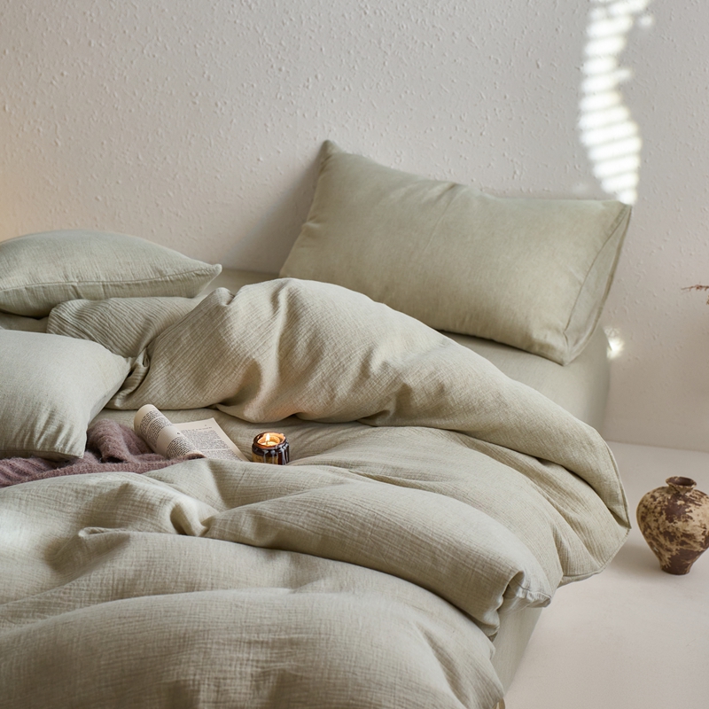 商品名称:清雅福2025秋冬新品棉麻双层皱皱纱四件套系列 微风沁绿