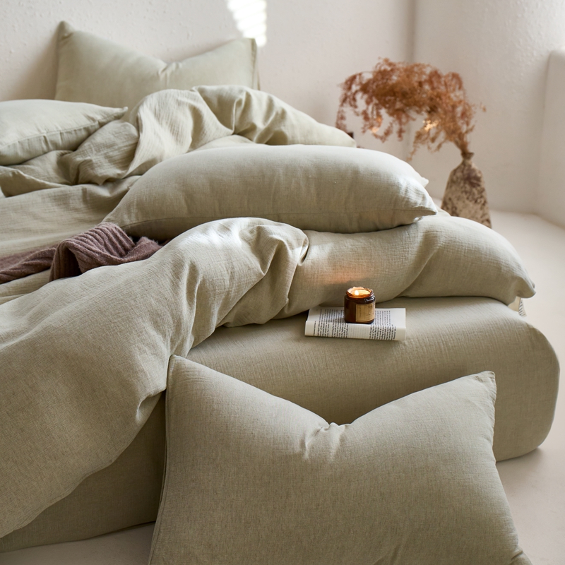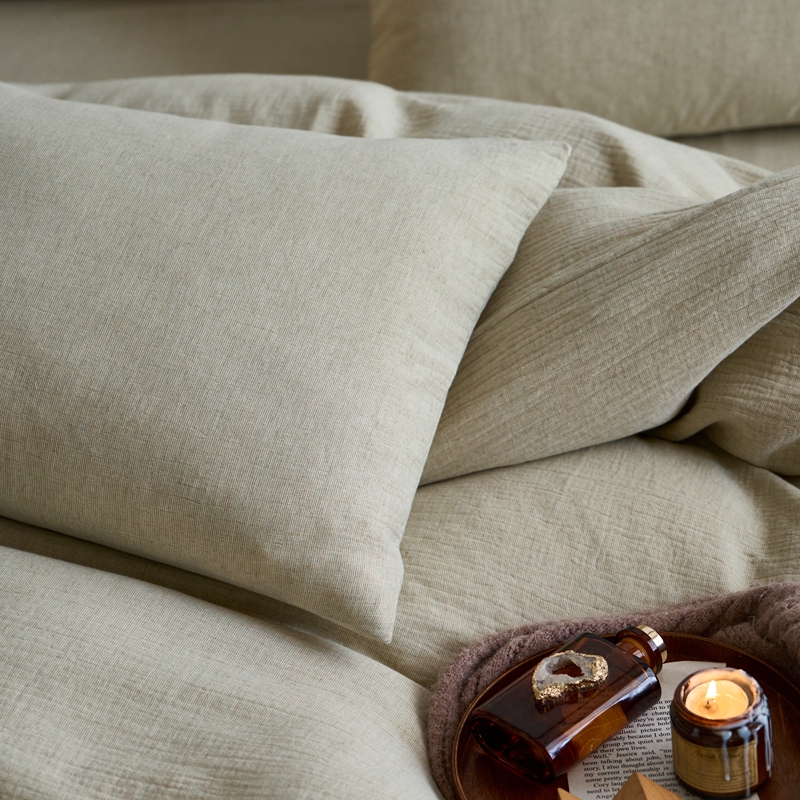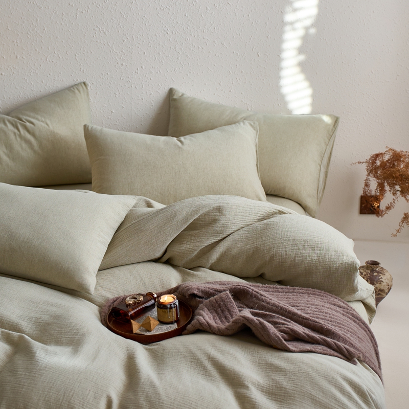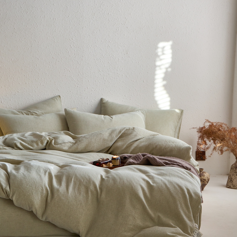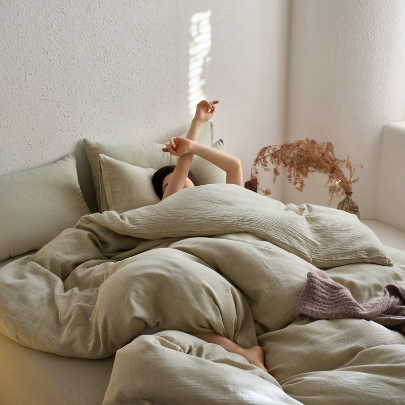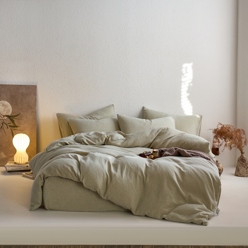 清雅福2025秋冬新品棉麻双层皱皱纱四件套系列 微风沁绿