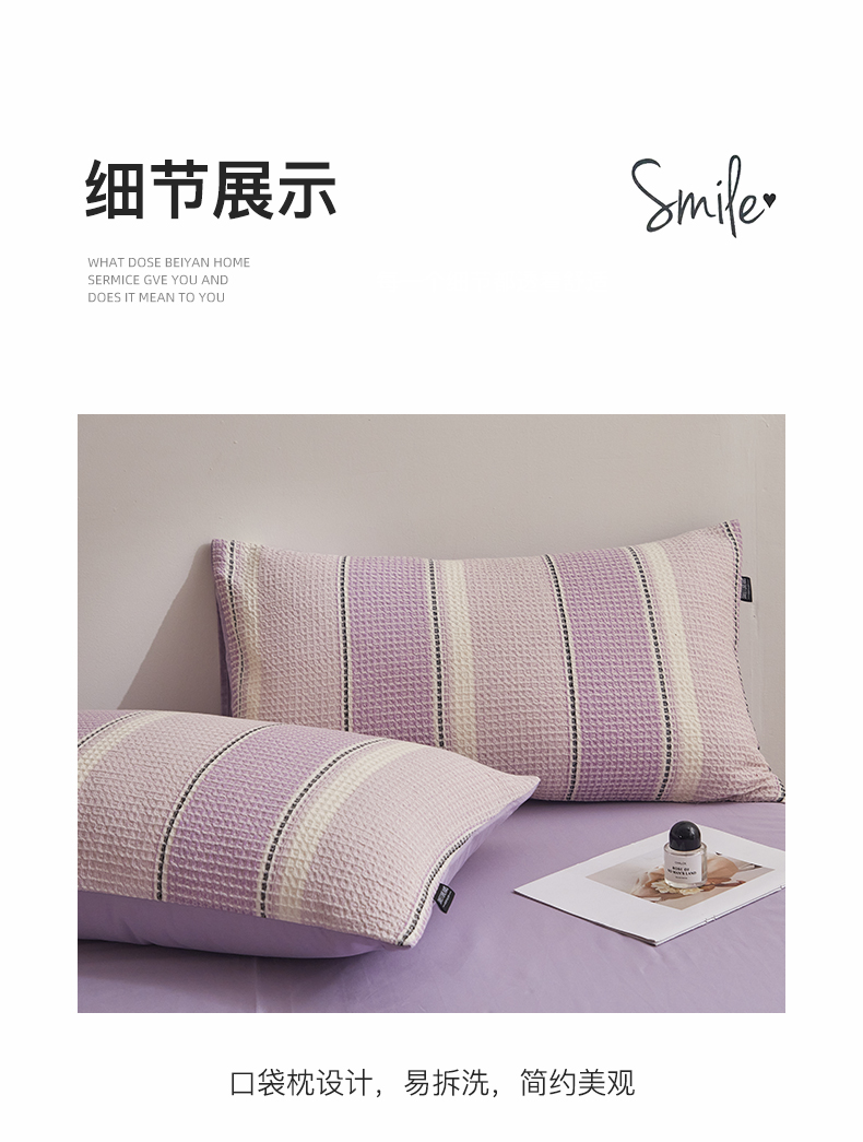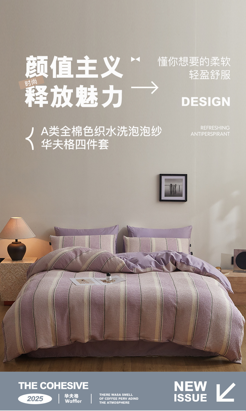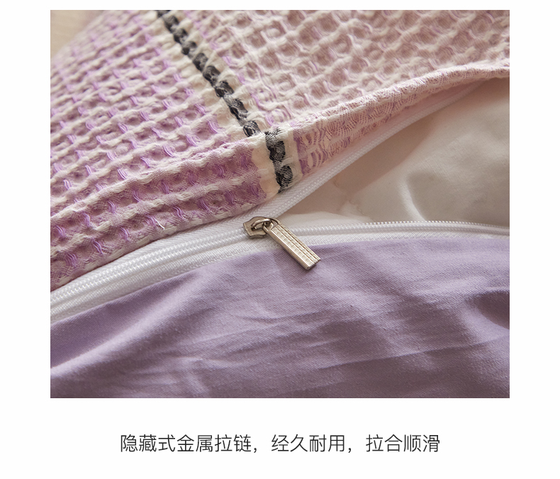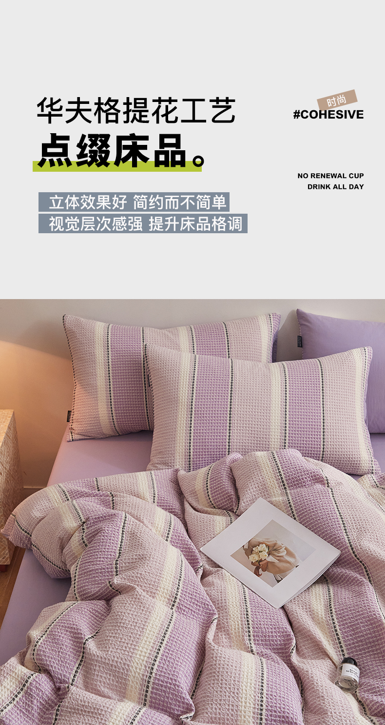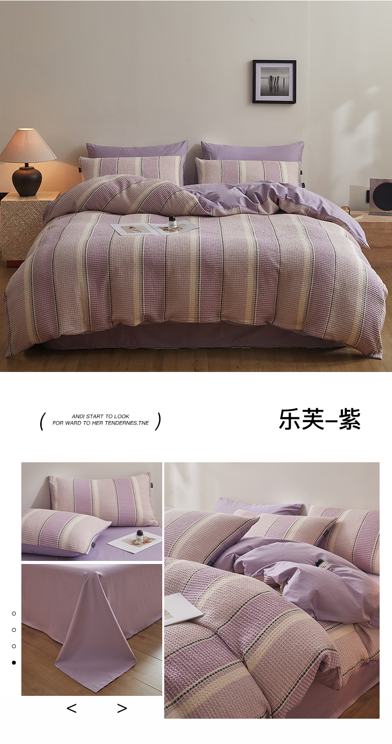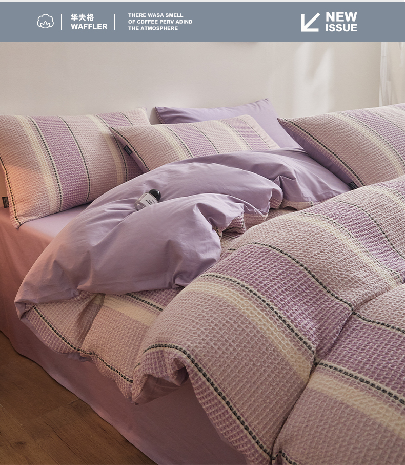 商品名称:格里芬家纺 2025新款全棉色织水洗泡泡纱华夫格四件套-乐芙 乐芙-紫