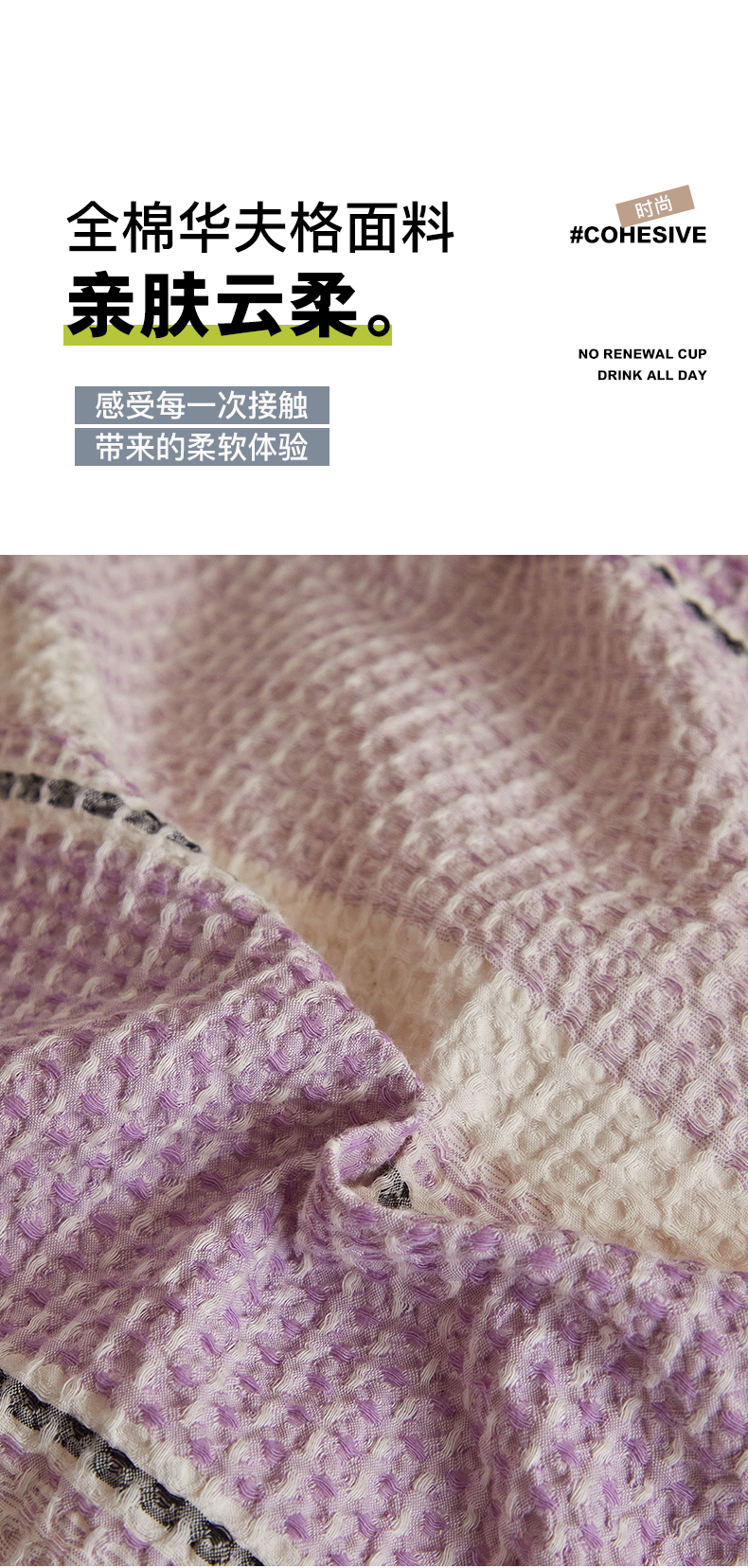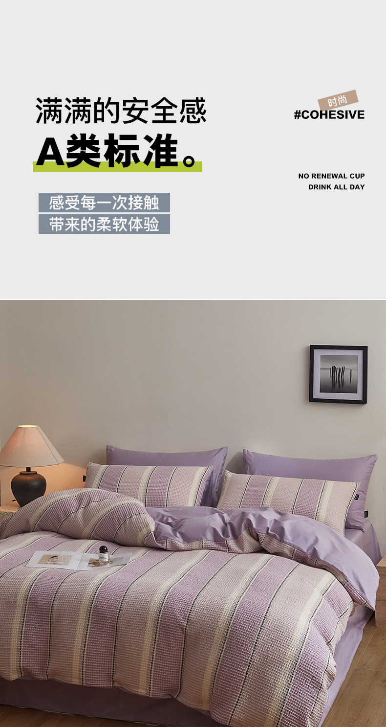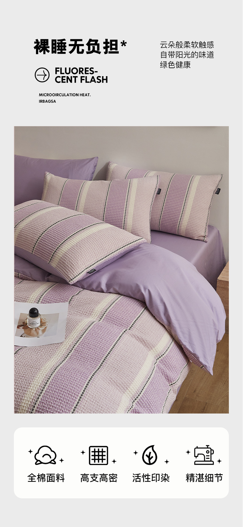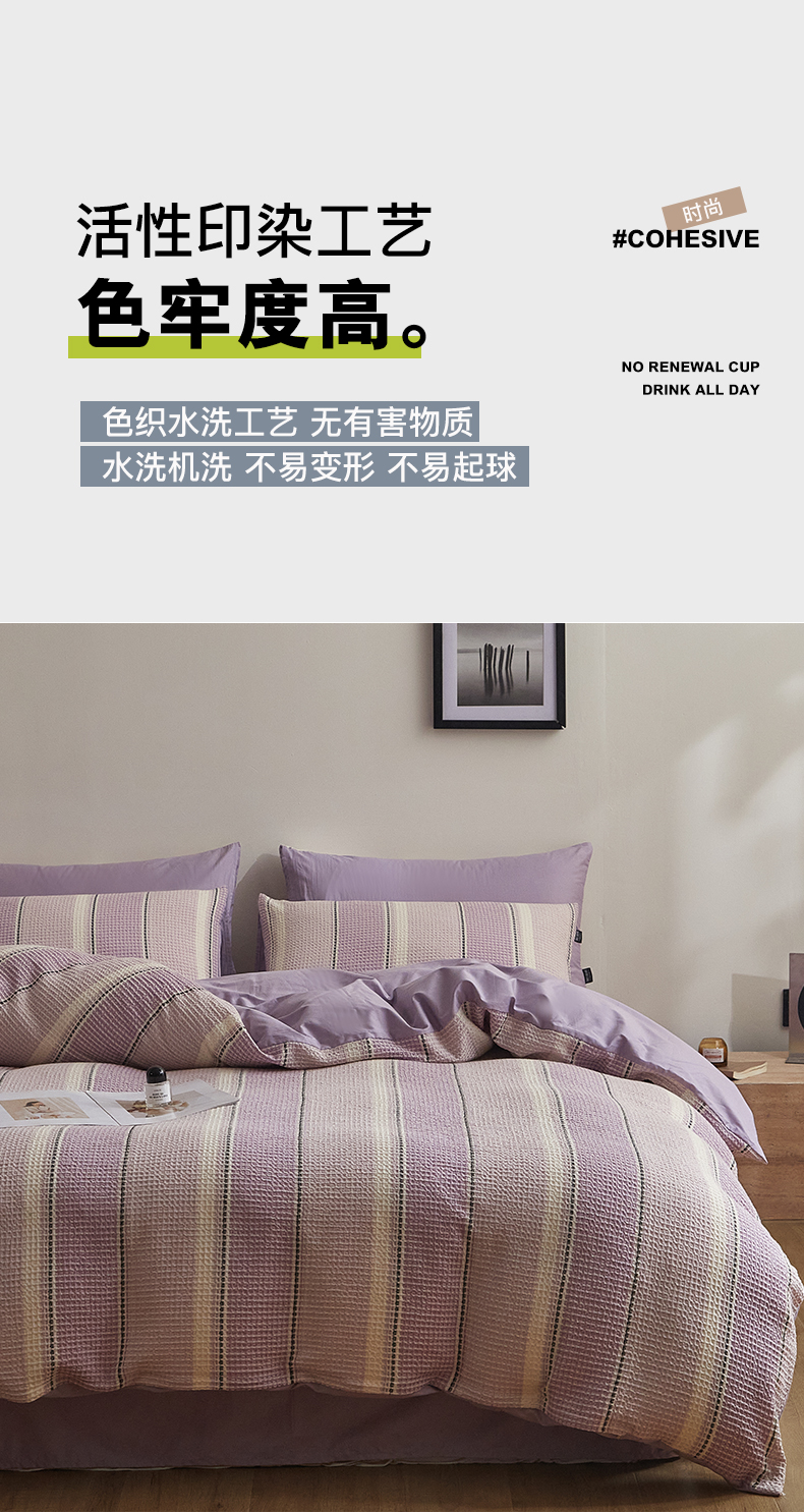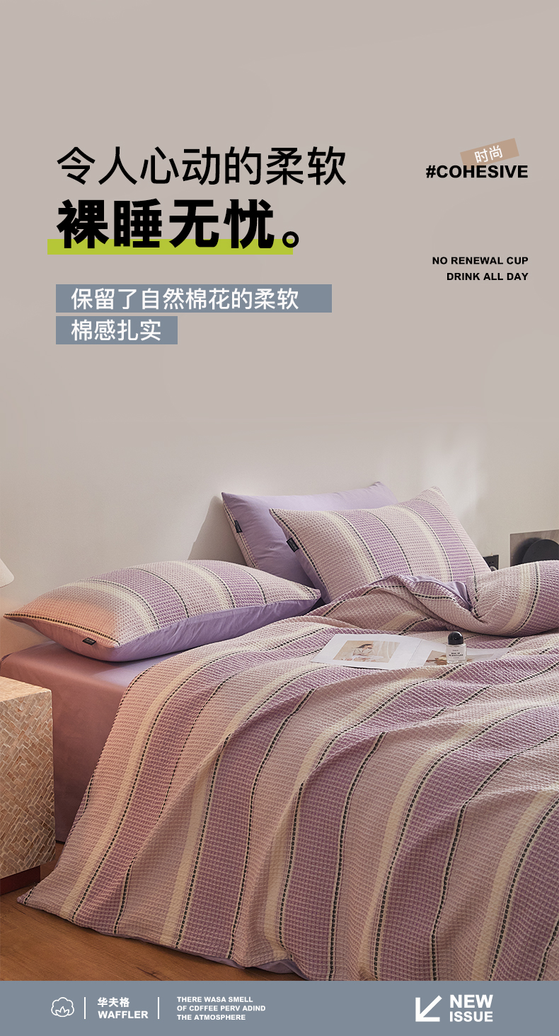 商品名称:格里芬家纺 2025新款全棉色织水洗泡泡纱华夫格四件套-乐芙 乐芙-紫