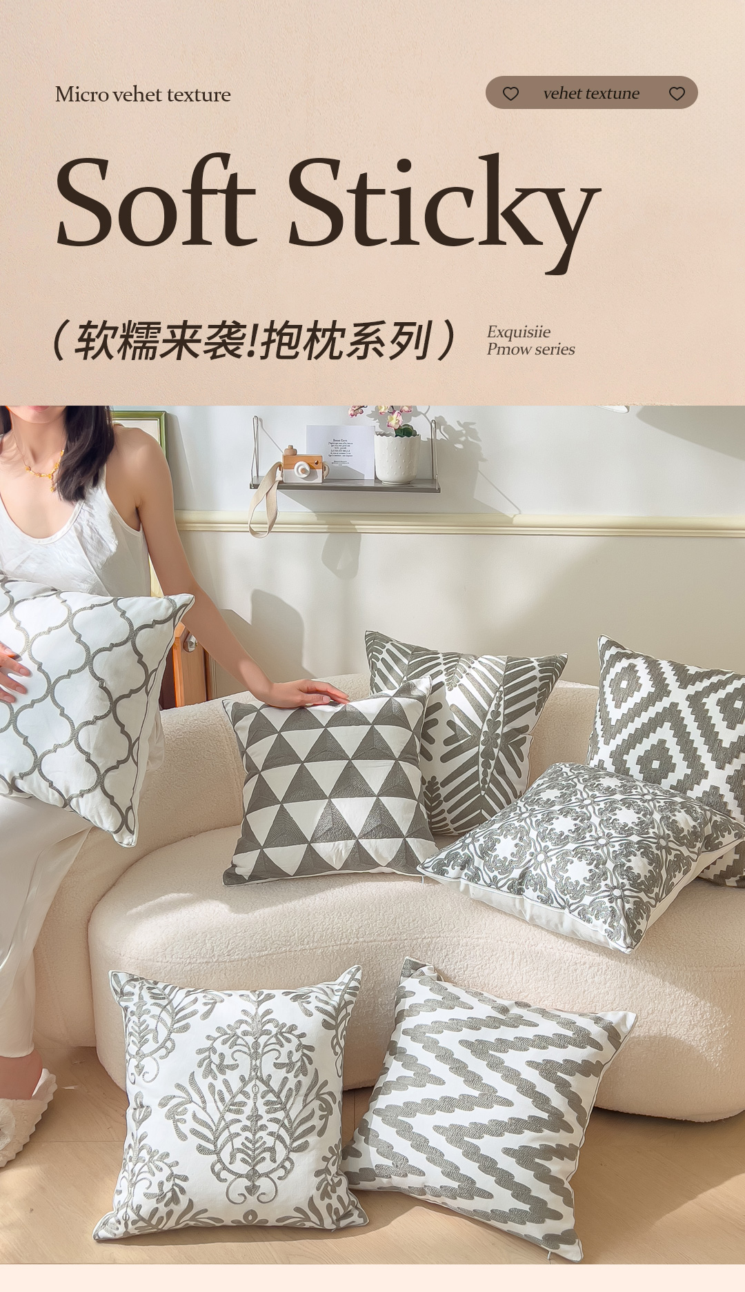 商品名称:诺可 2025新款全棉毛巾绣抱枕外贸跨境电商直播纯色几何系列-灰色 灰-三川