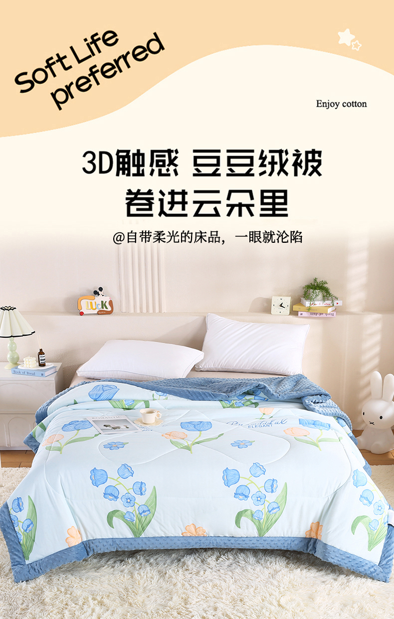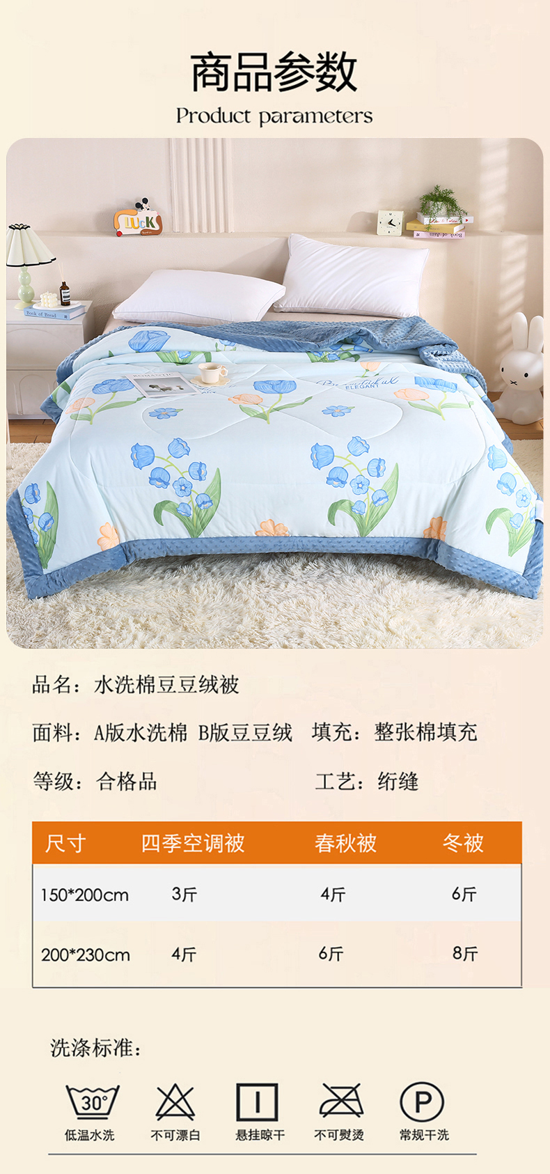 • 91家纺网 家纺一手货源 找家纺 欧朵 2025新款A类水洗棉豆豆绒被子冬被大豆被芯春秋被冬被 幼儿园 学生宿舍 四季被空调被子缤纷花朵