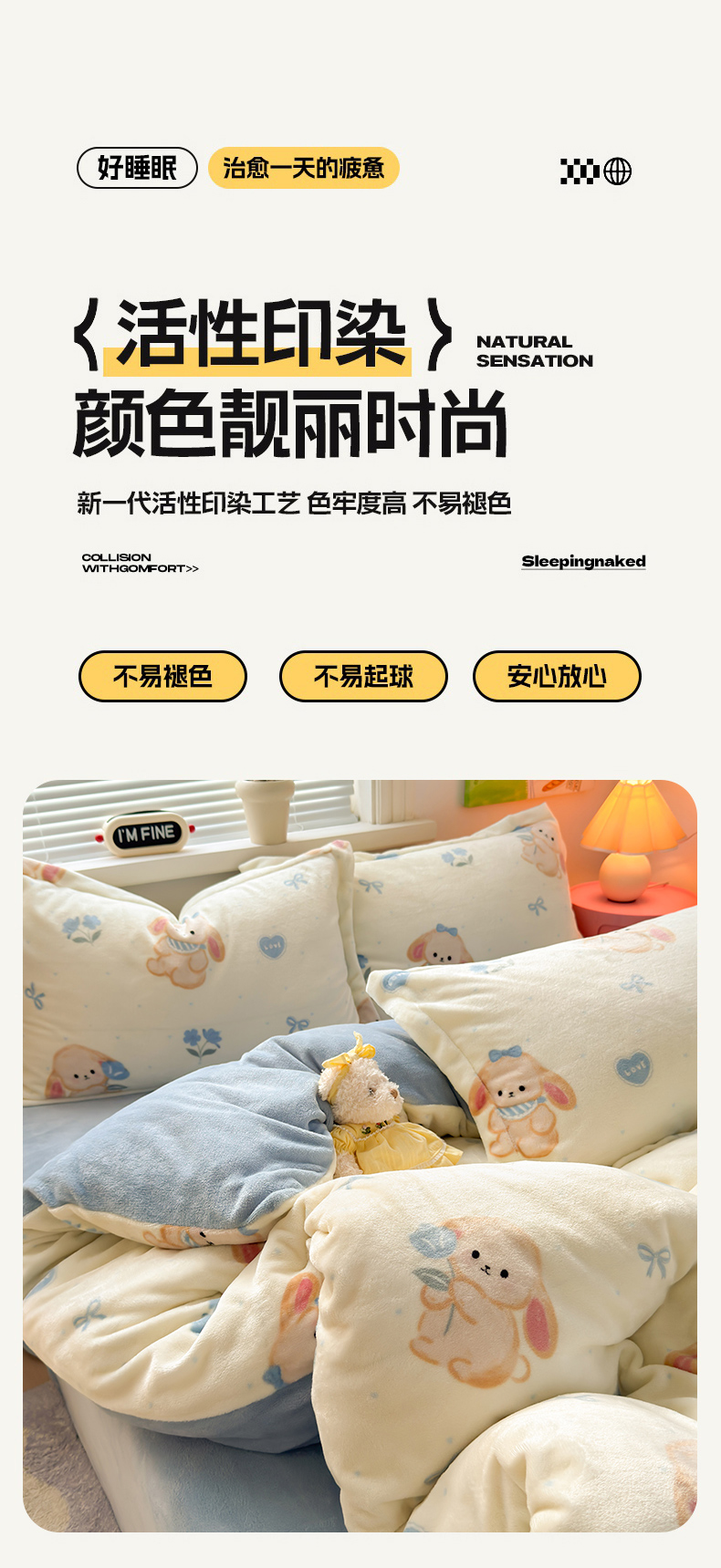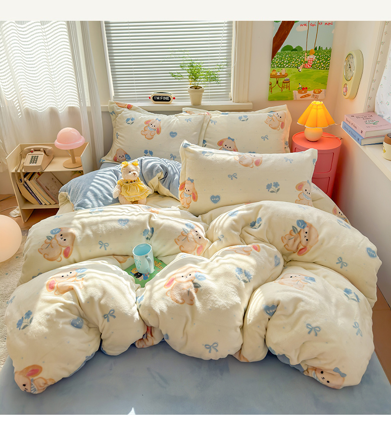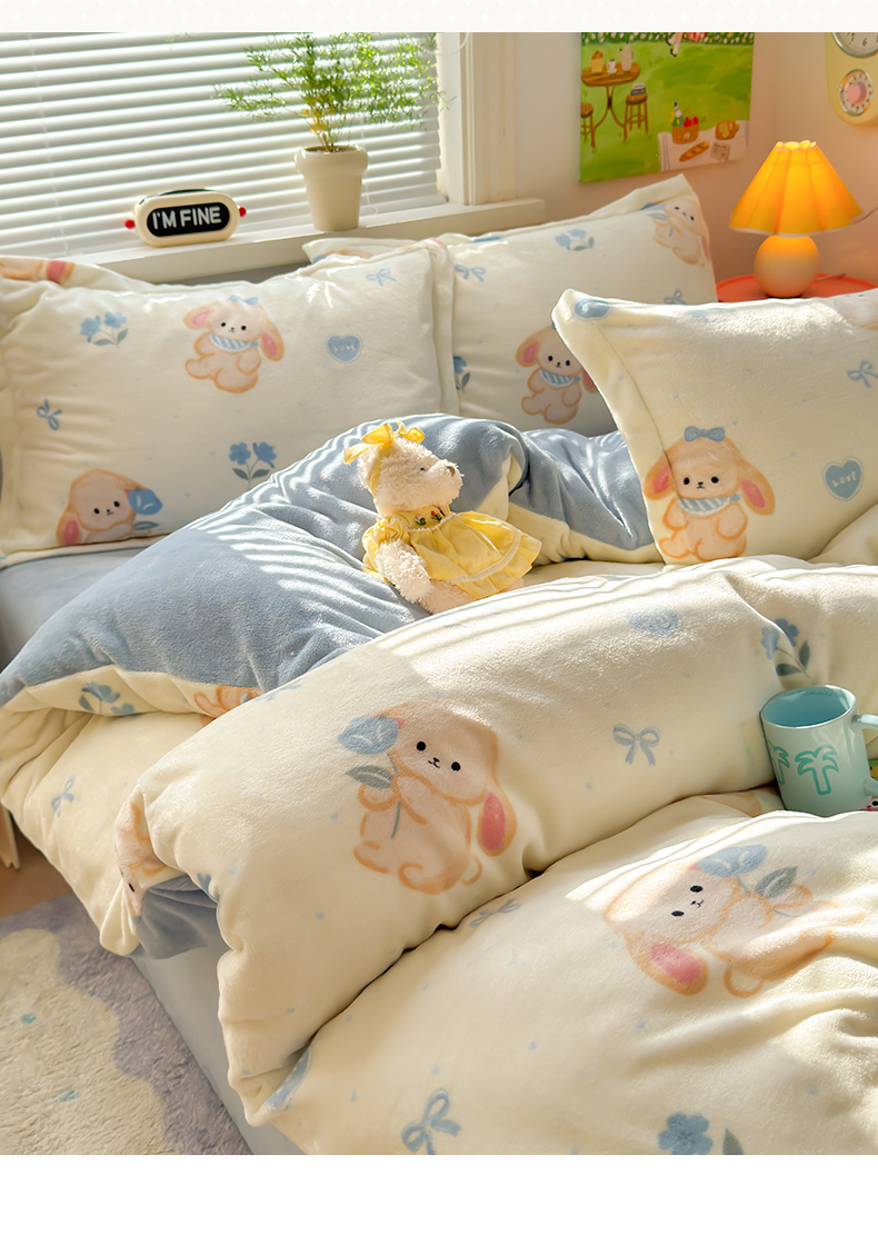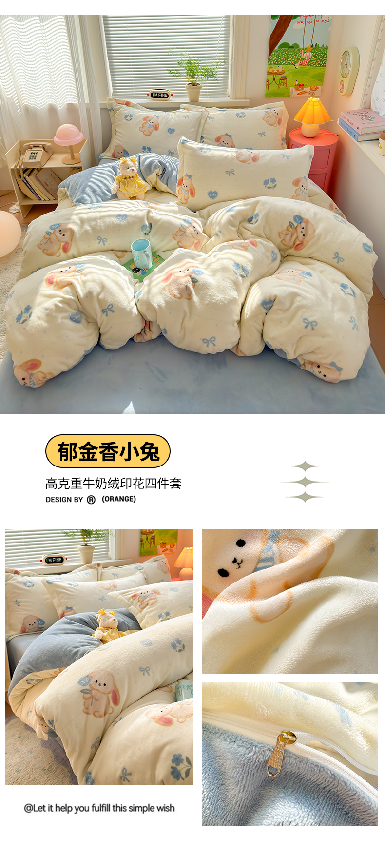 当前位置: 91家纺网 > 商品网购 > 床品套件 > 四件套 > 牛奶绒四件套 > 铭宣 2025新款高克重牛奶绒印花保暖四件套床单床笠单被套款 郁金香小兔