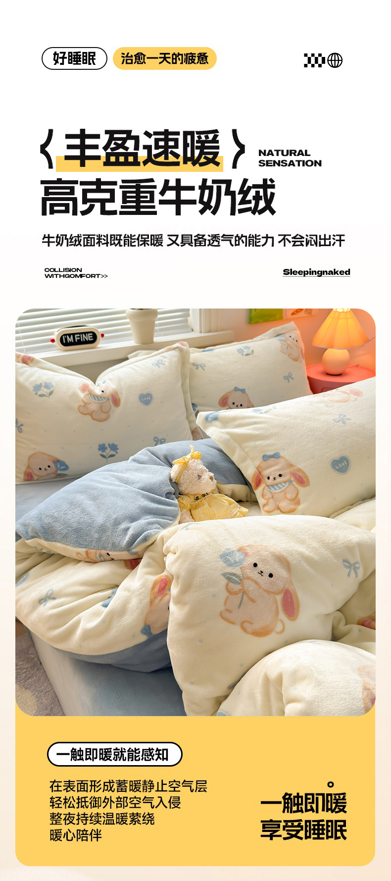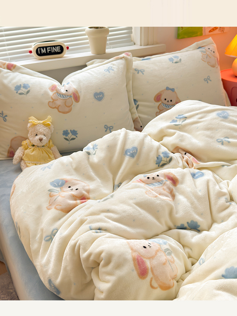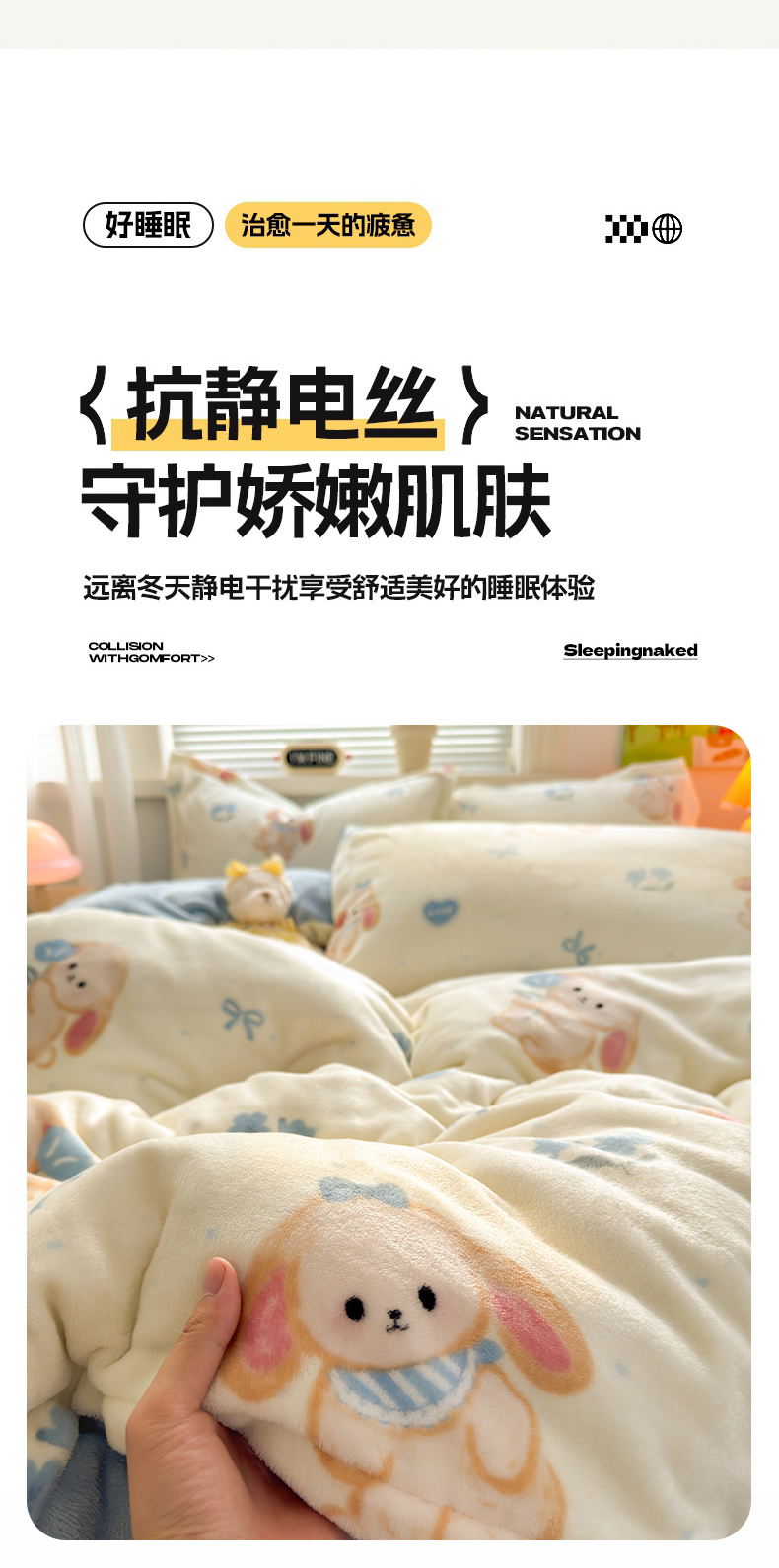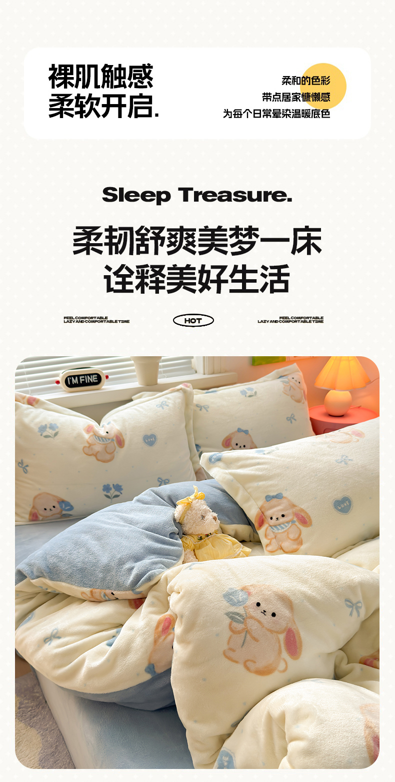 当前位置: 91家纺网 > 商品网购 > 床品套件 > 四件套 > 牛奶绒四件套 > 铭宣 2025新款高克重牛奶绒印花保暖四件套床单床笠单被套款 郁金香小兔