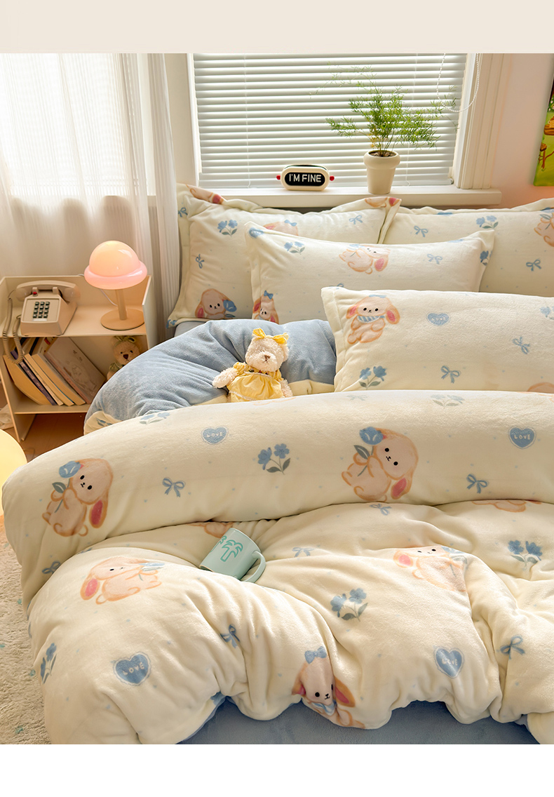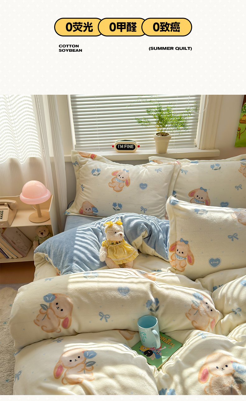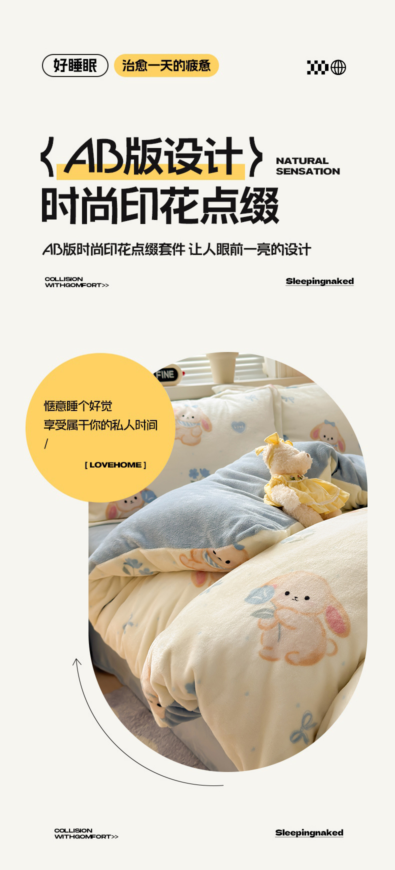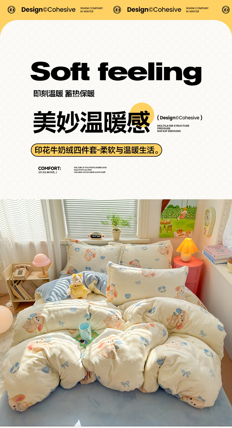 当前位置: 91家纺网 > 商品网购 > 床品套件 > 四件套 > 牛奶绒四件套 > 铭宣 2025新款高克重牛奶绒印花保暖四件套床单床笠单被套款 郁金香小兔
