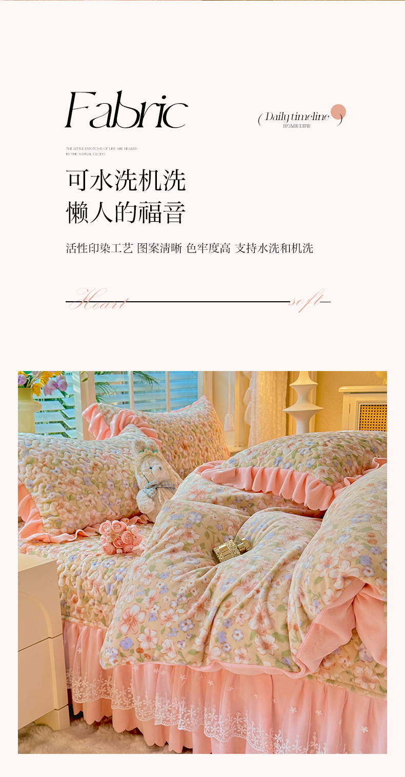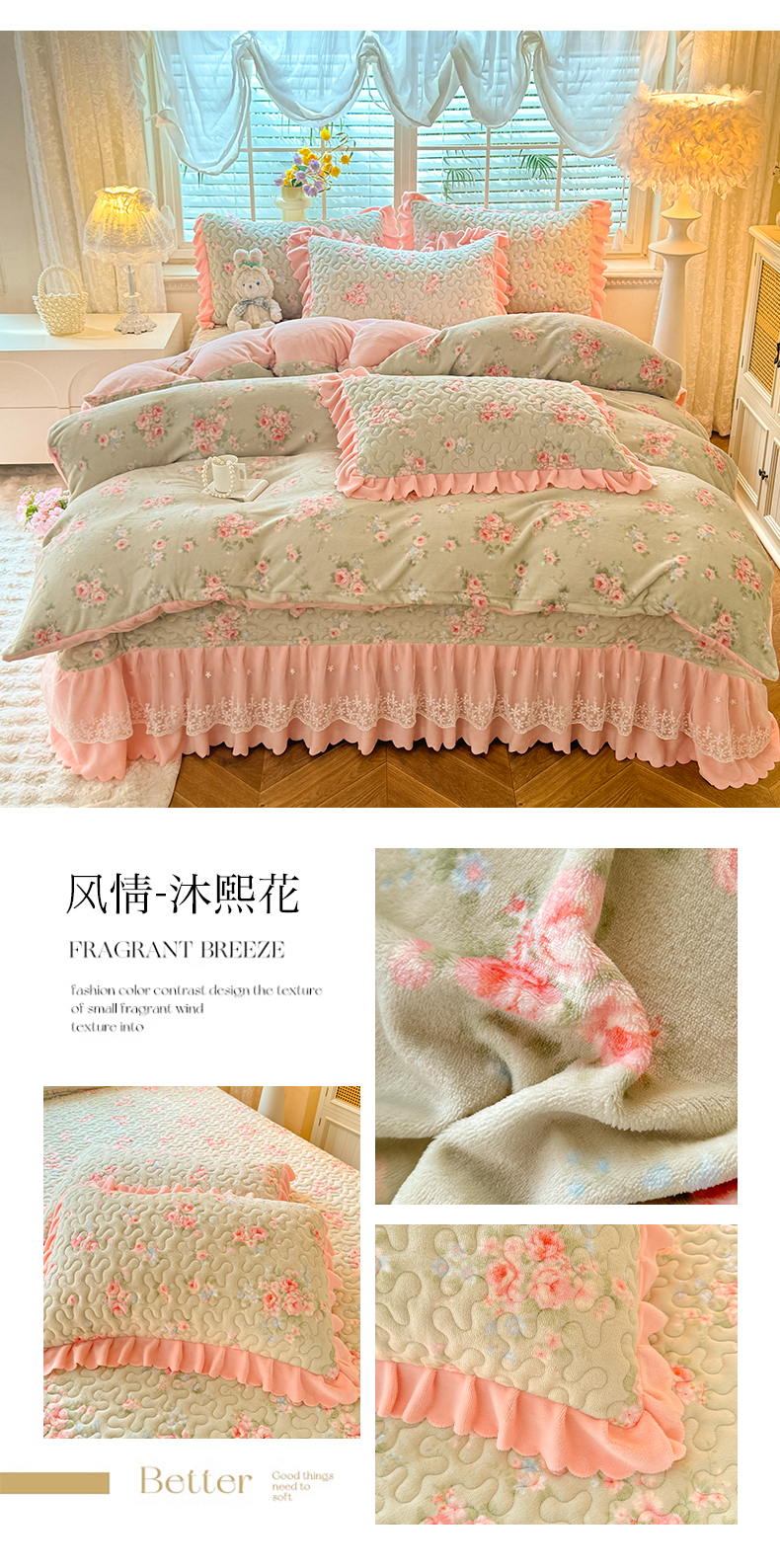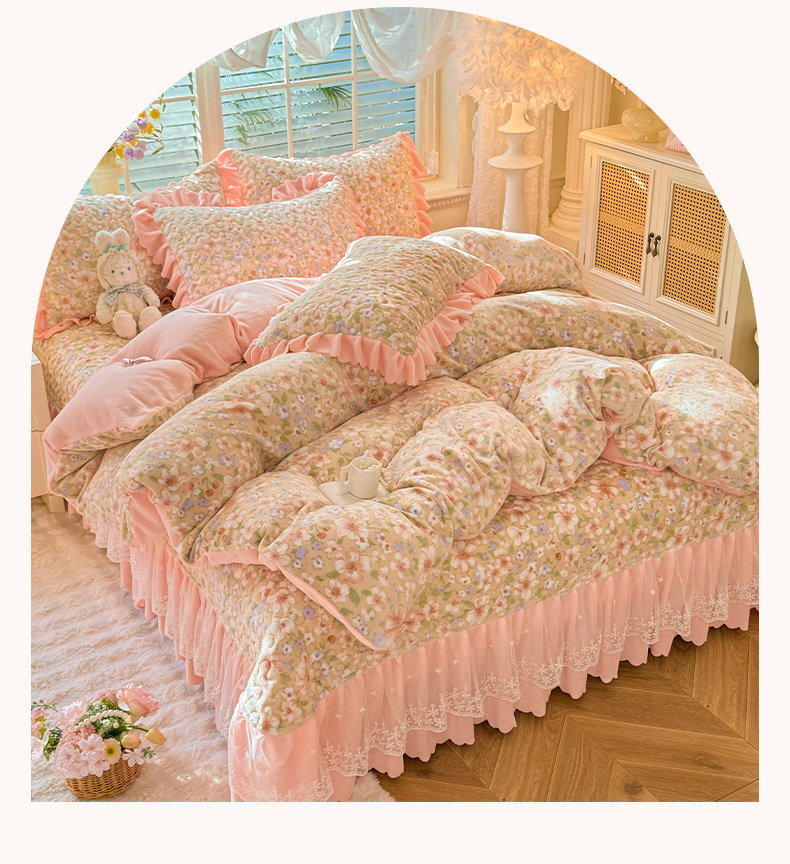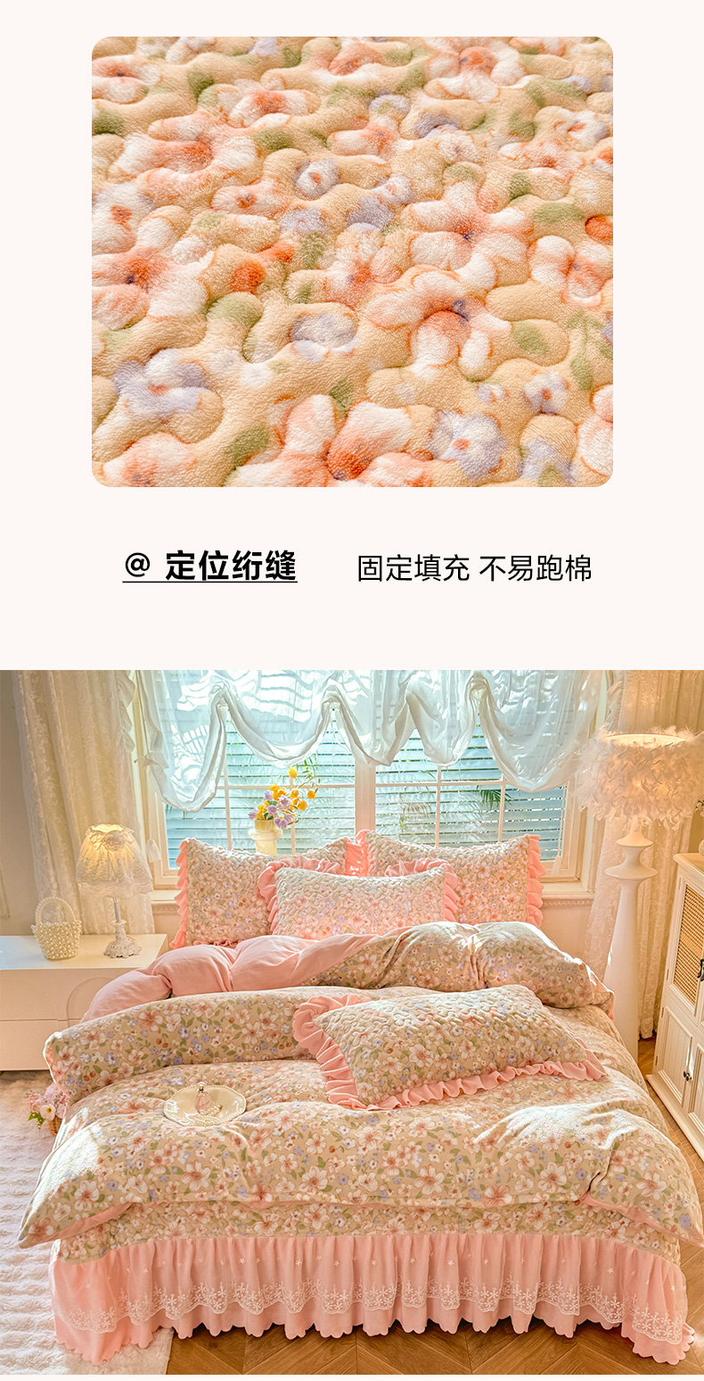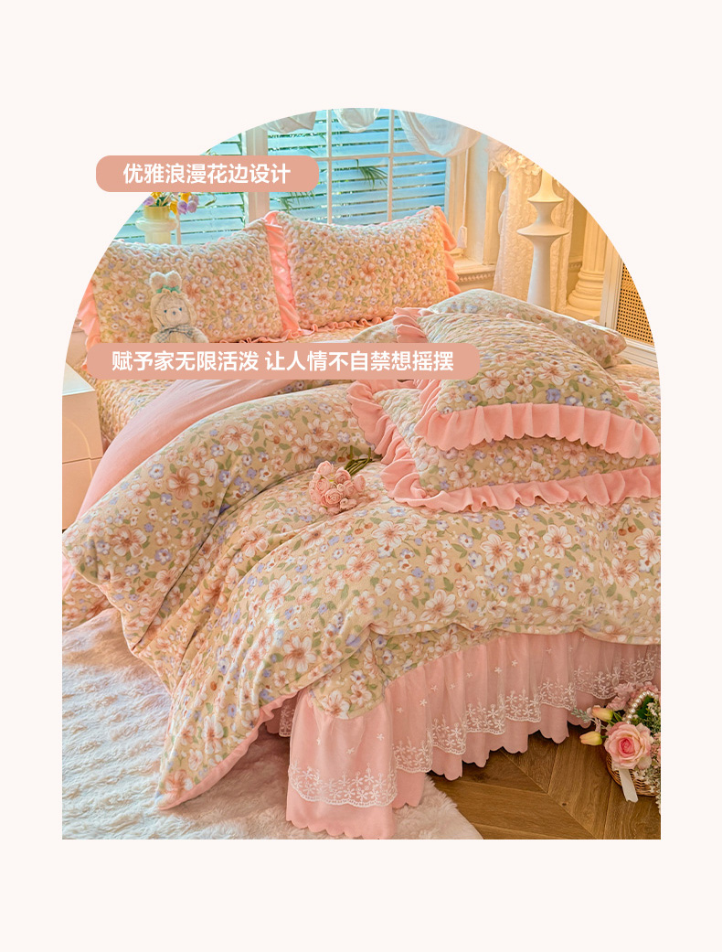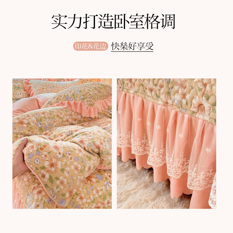当前位置: 91家纺网 > 商品网购 > 床品套件 > 四件套 > 牛奶绒四件套 > 九诺家纺 2025新款直播热款双层蕾丝花边牛奶绒印花床盖四件套床盖单件三件套 风情-梦境花语