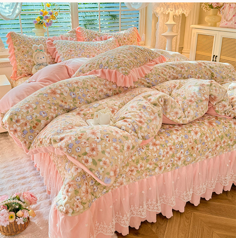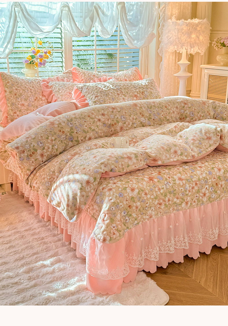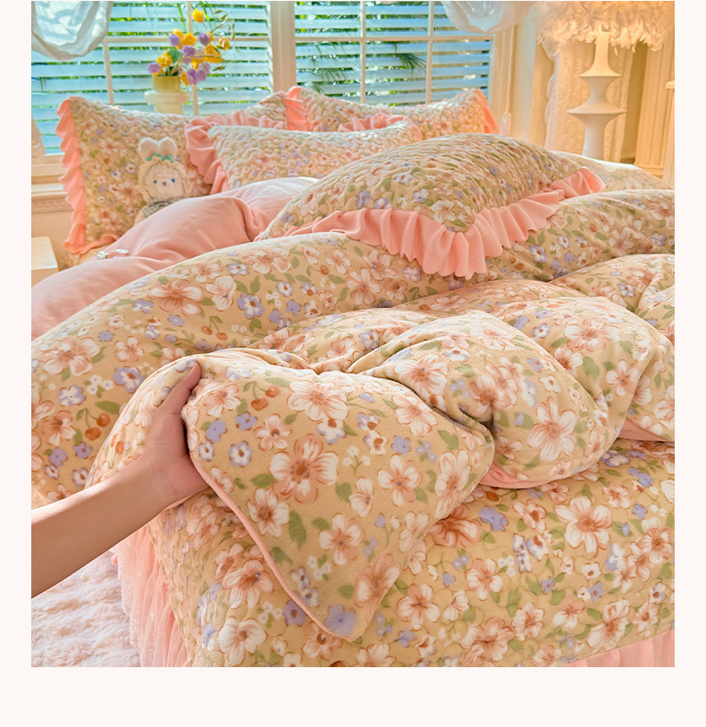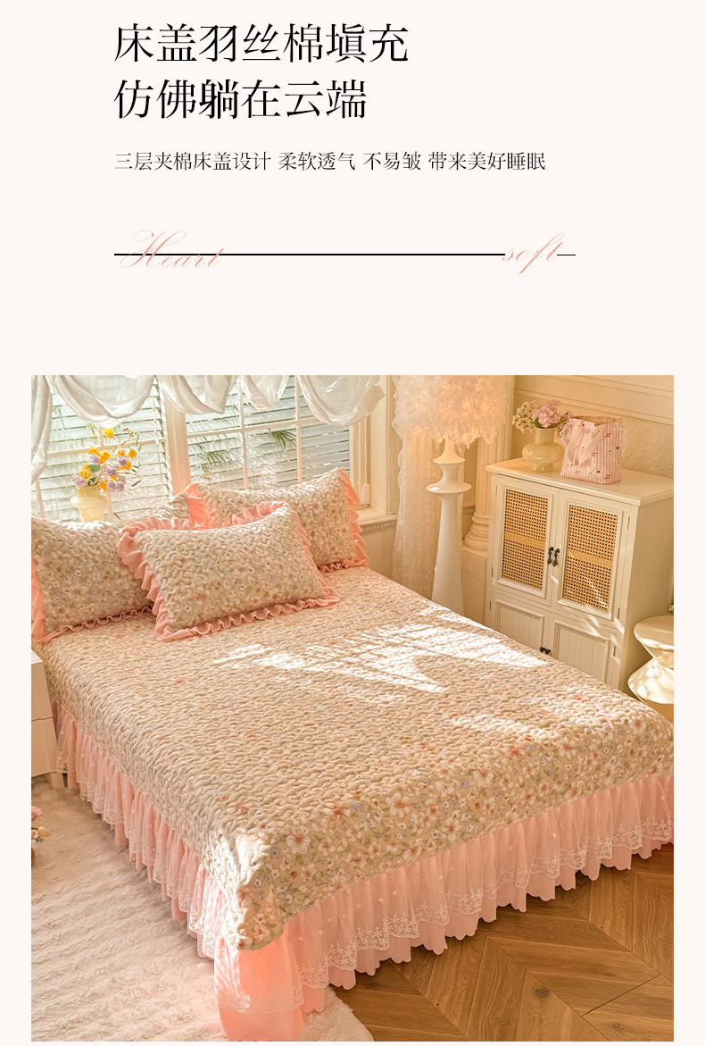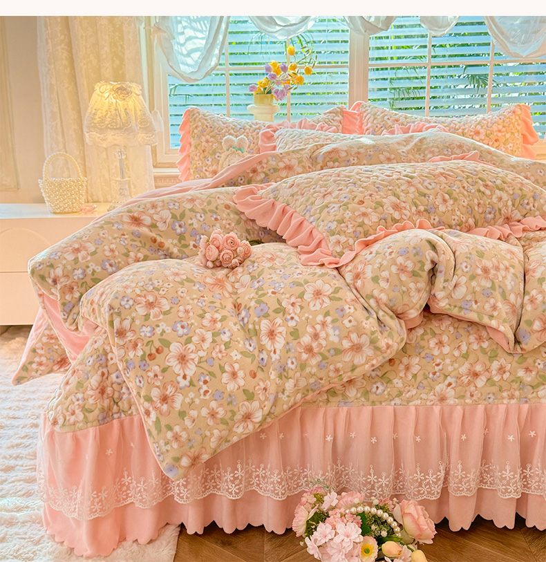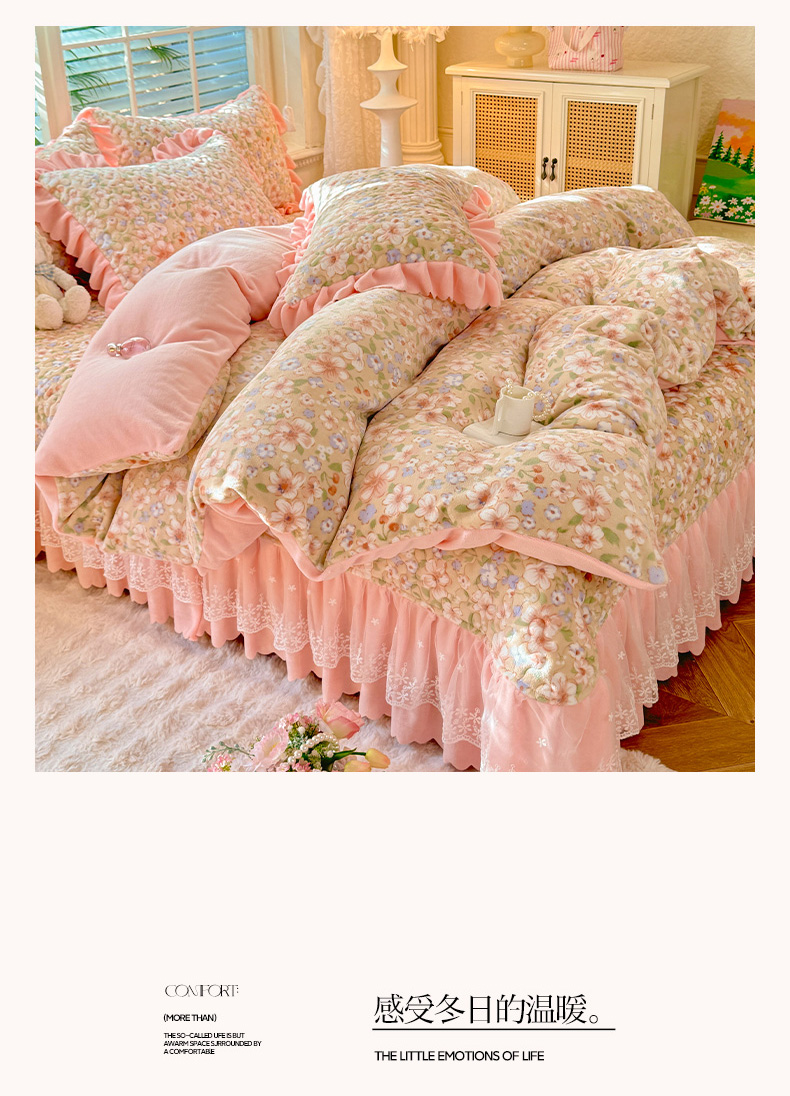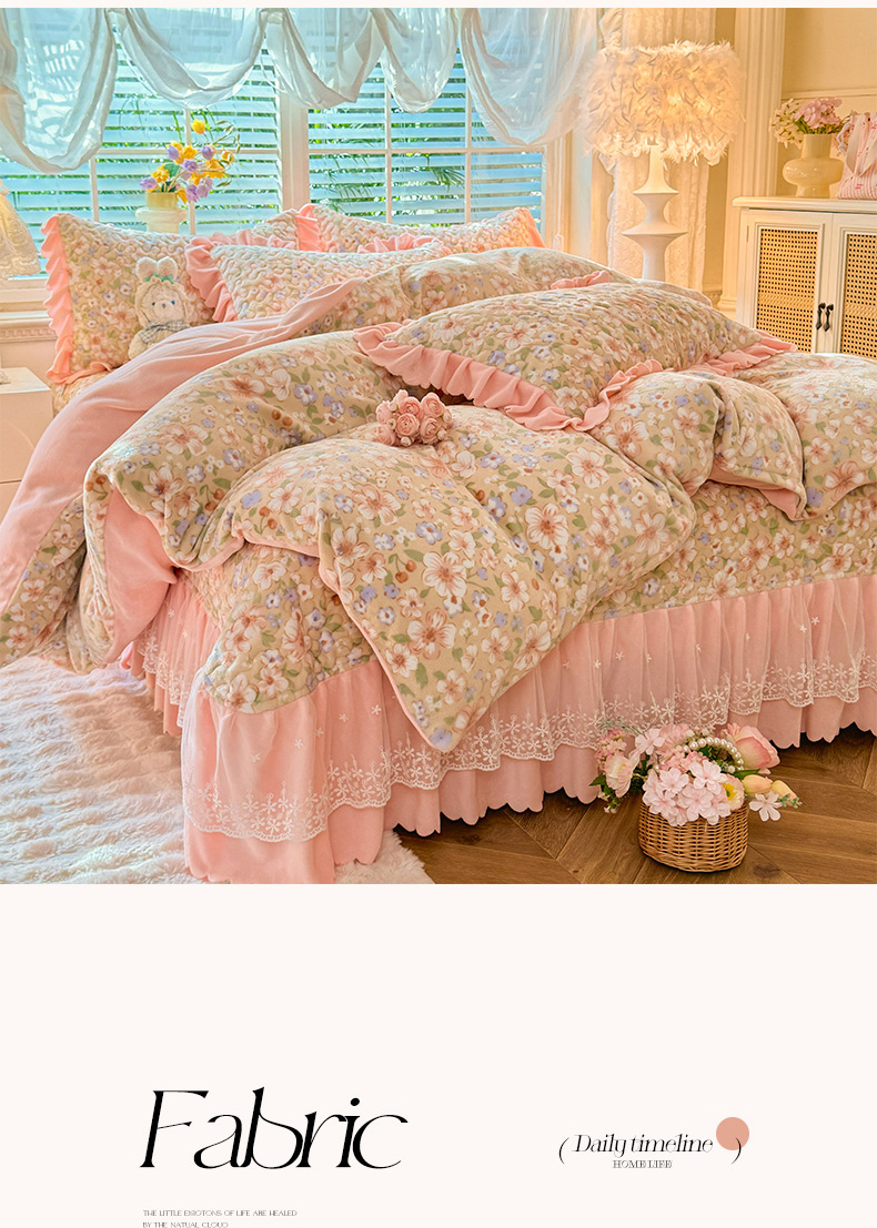 当前位置: 91家纺网 > 商品网购 > 床品套件 > 四件套 > 牛奶绒四件套 > 九诺家纺 2025新款直播热款双层蕾丝花边牛奶绒印花床盖四件套床盖单件三件套 风情-梦境花语
