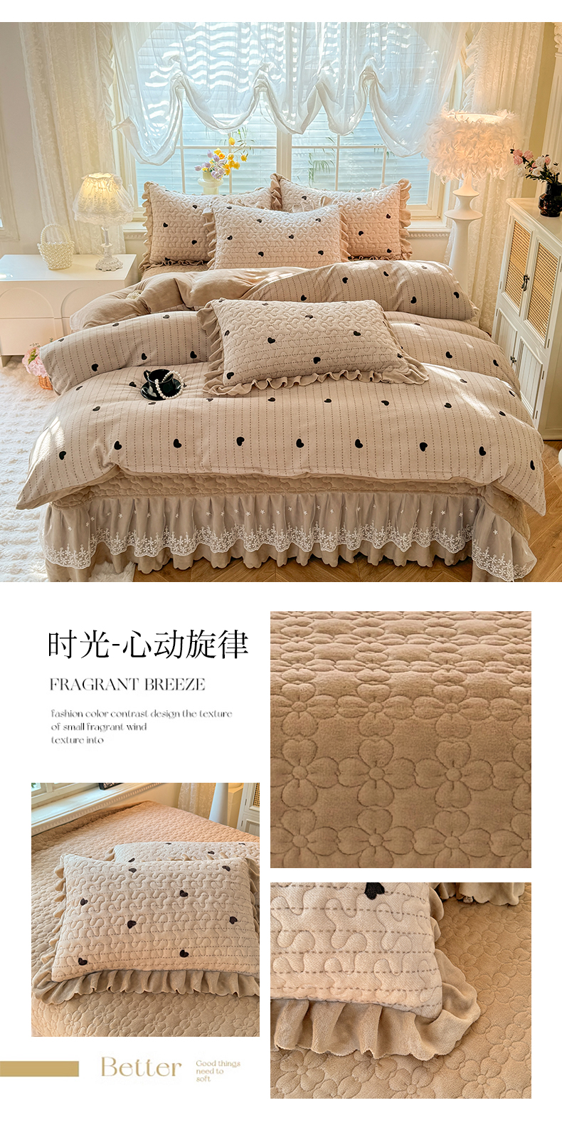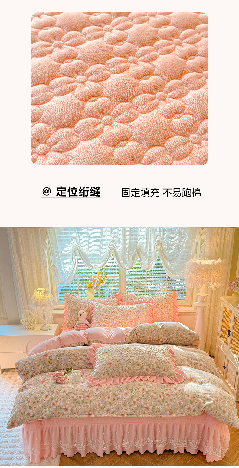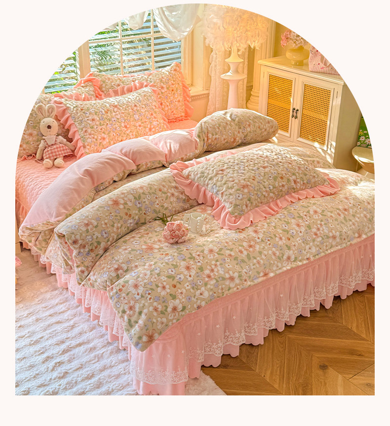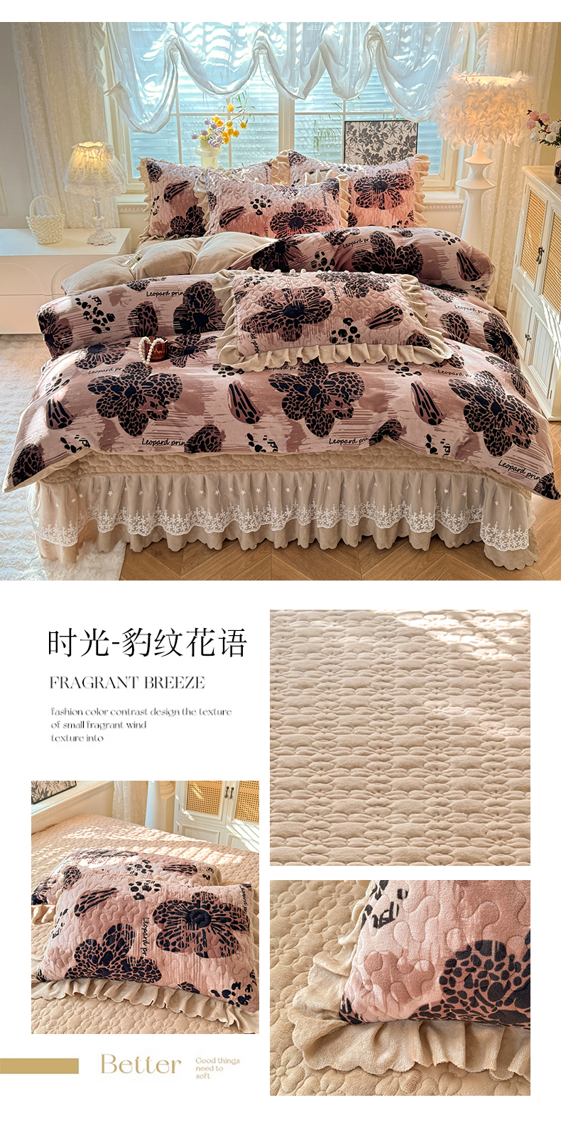当前位置: 91家纺网 > 商品网购 > 床品套件 > 四件套 > 牛奶绒四件套 > 九诺家纺 2025新款直播热款双层蕾丝花边牛奶绒印花床盖四件套床盖单件三件套 时光-花舞轻盈