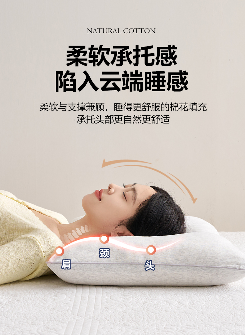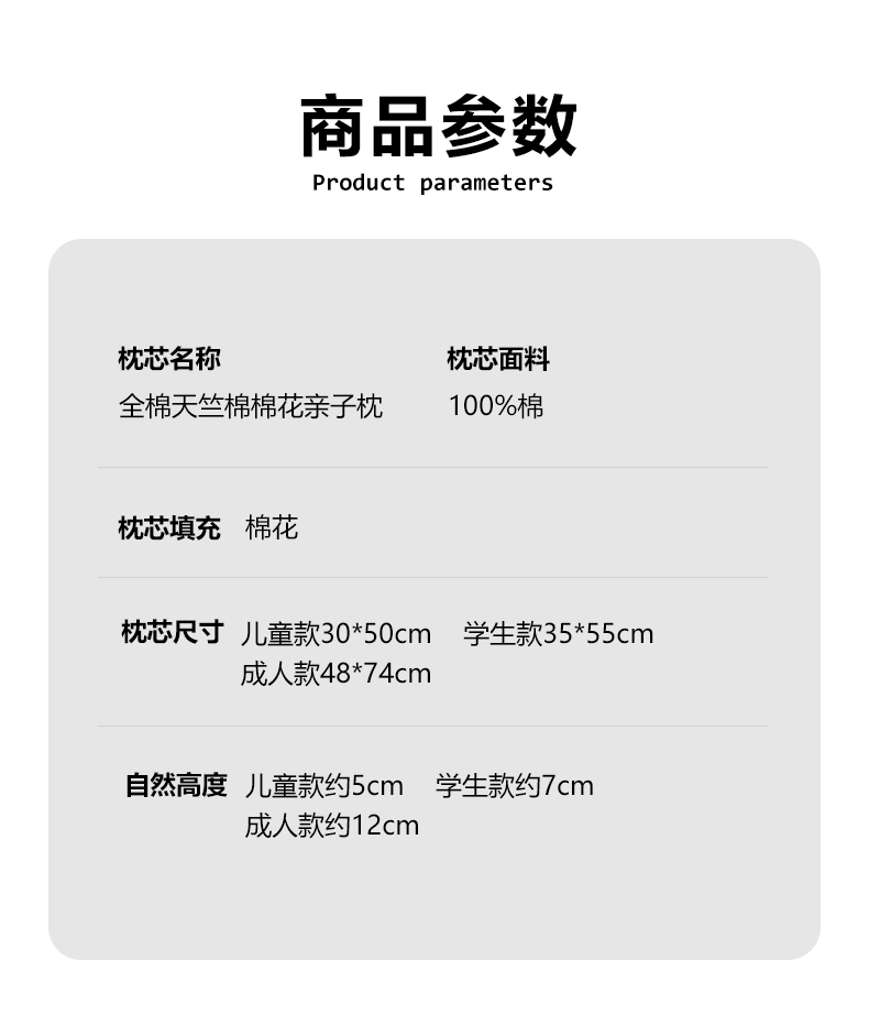 商品名称:乐可 2025新款全棉天竺棉棉花亲子枕 天竺棉棉花枕-灰-成人