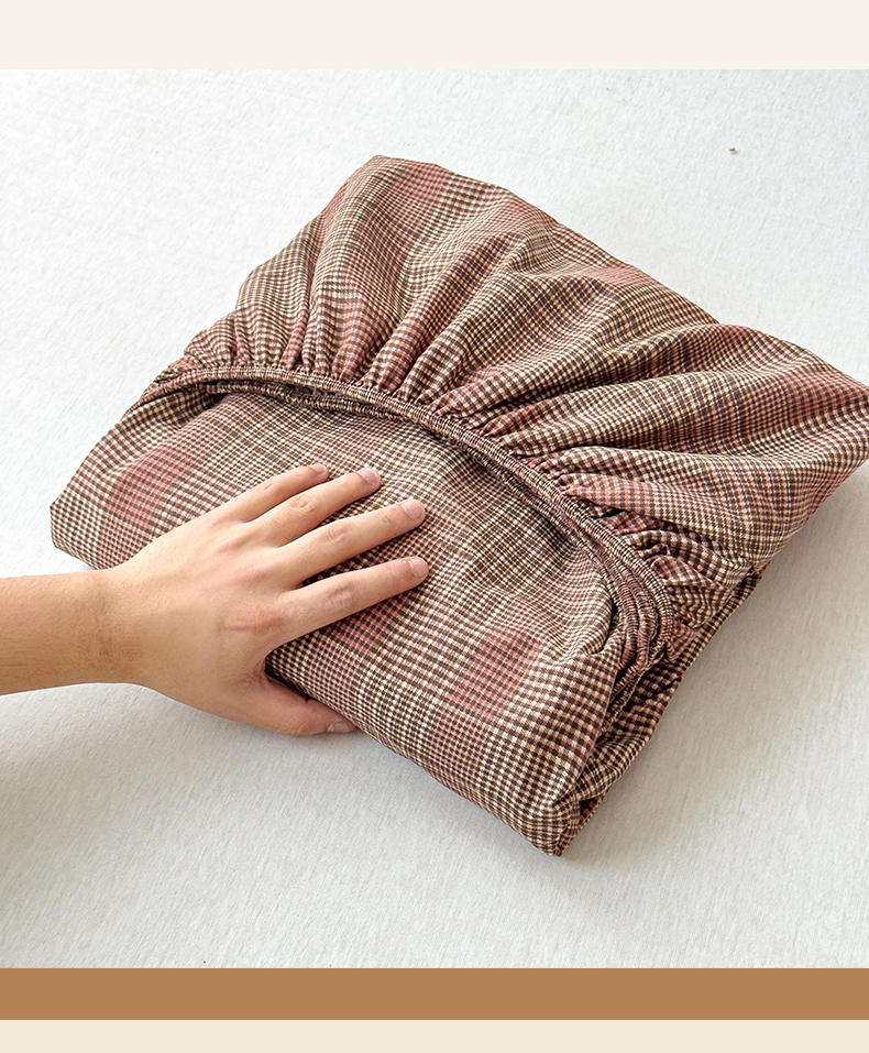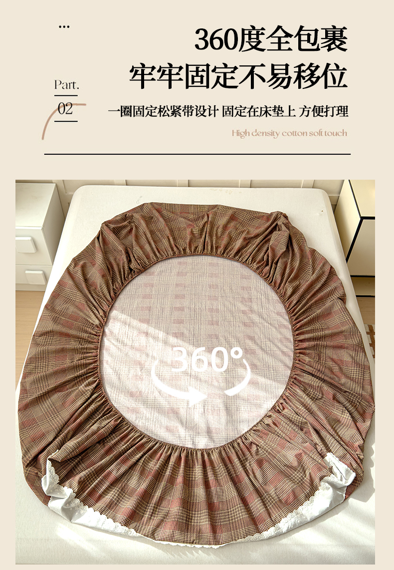 当前位置: 91家纺网 > 商品网购 > 床品套件 > 三件套 > 富阿娜家纺 2026年新款小布袋简约复古花边床笠三件套 茶褐织格