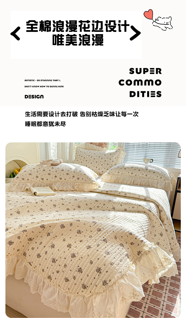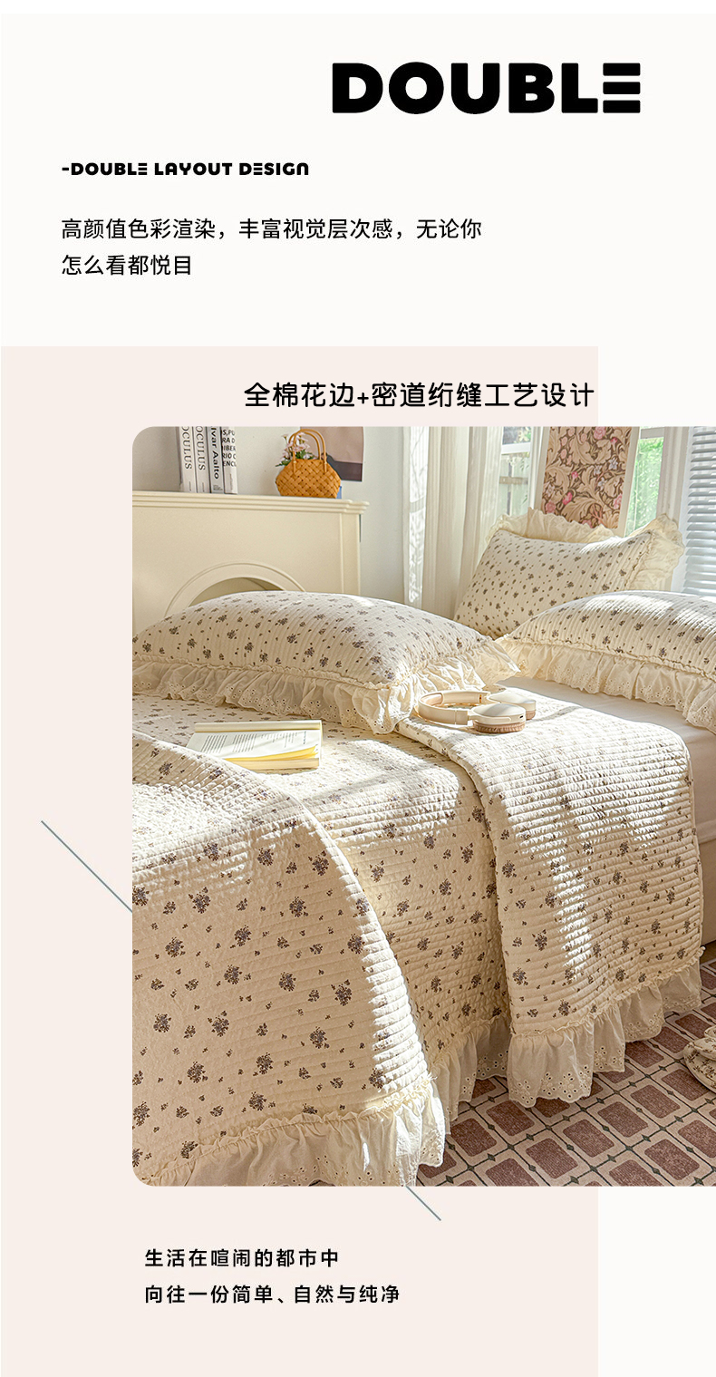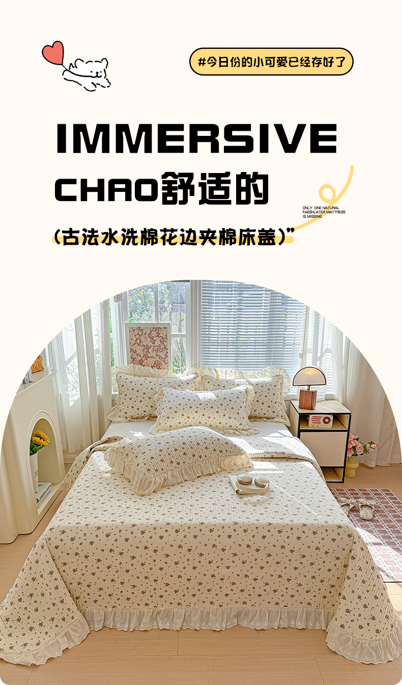 (总)亨通家纺 2026新款古法水洗棉花边夹棉床盖单床盖床盖单件,春天里,含香,和风细雨,花田与夏,少女茶会红,甜豆女孩,小苍兰,瑶花知,珍妮,组合图 仅供参考
