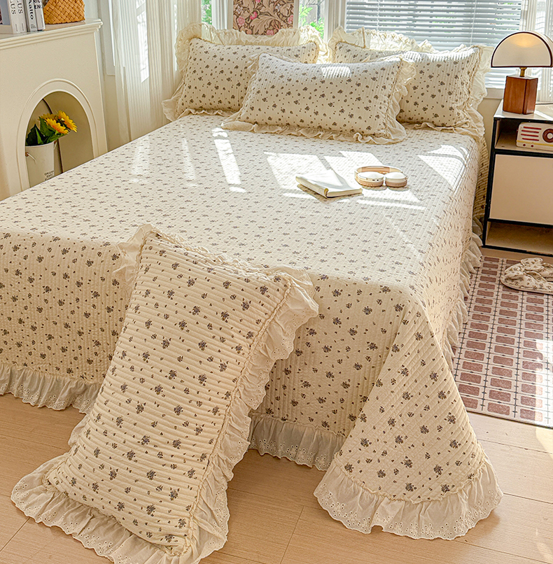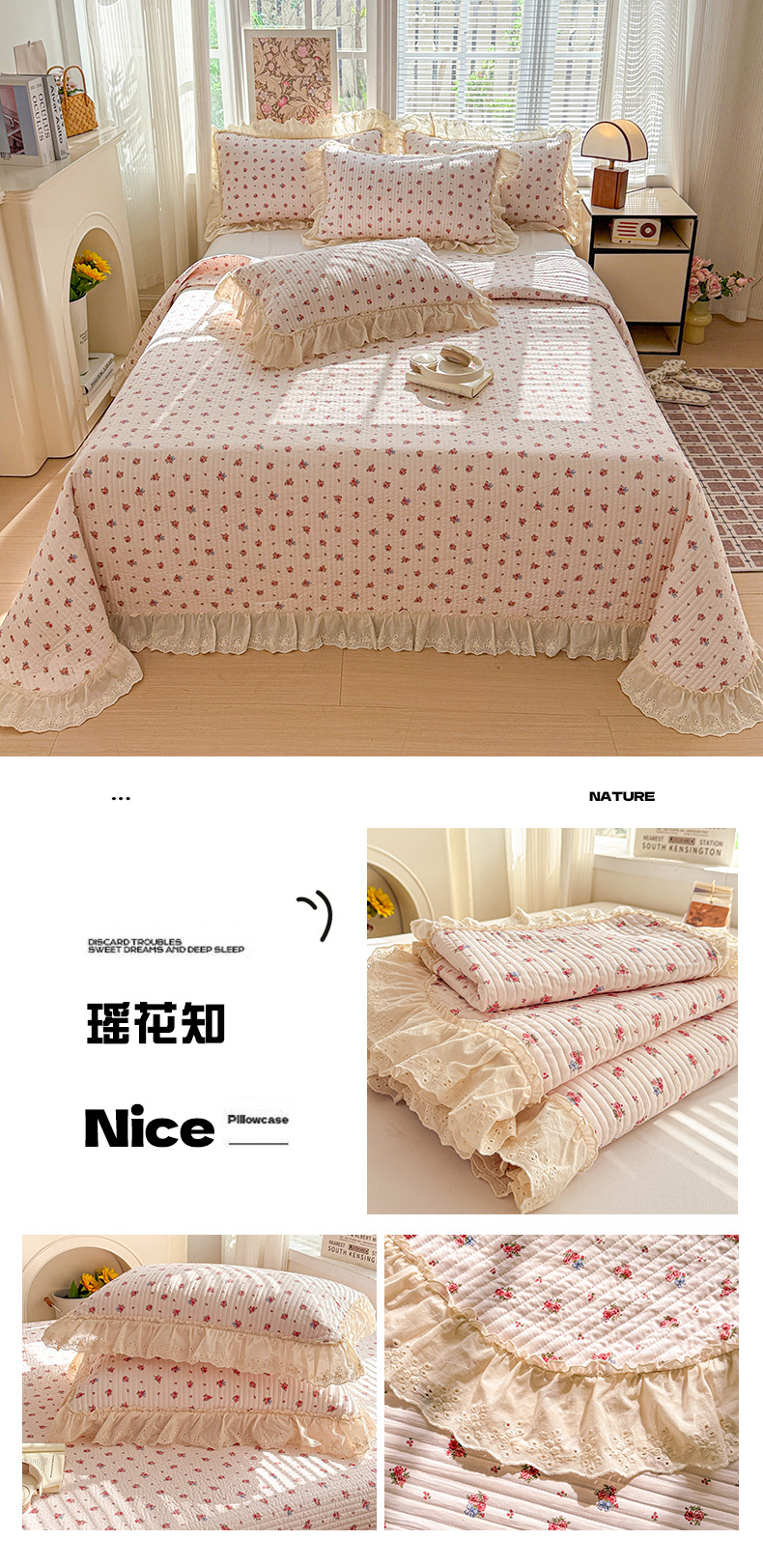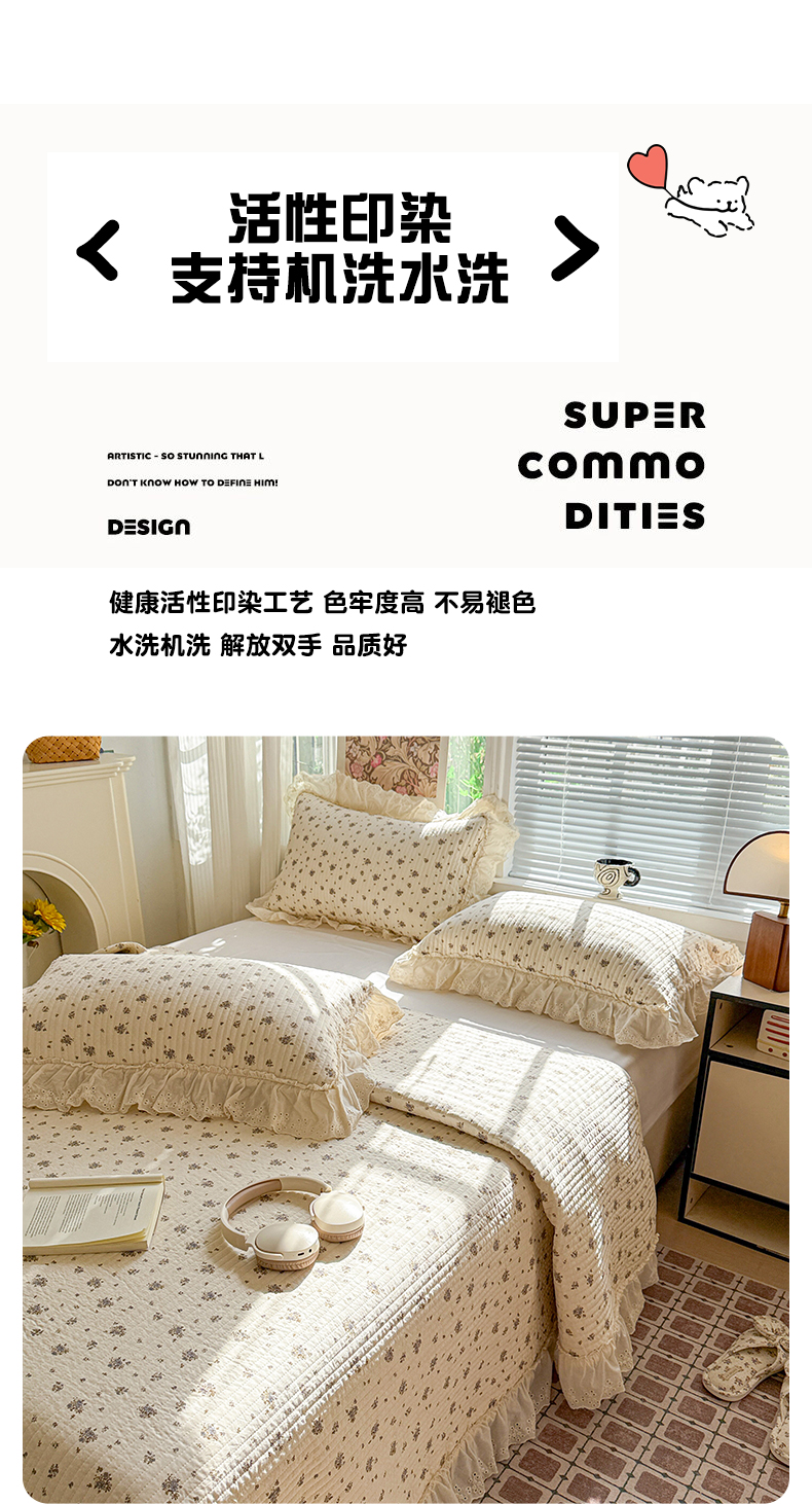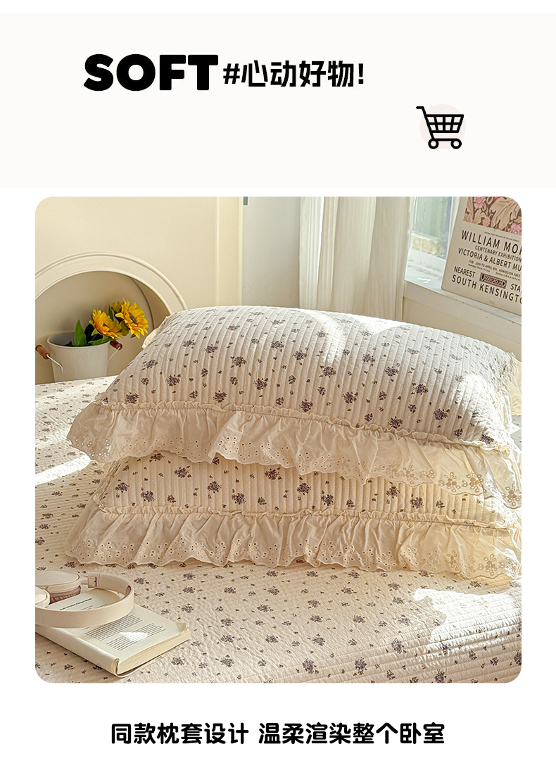 (总)亨通家纺 2026新款古法水洗棉花边夹棉床盖单床盖床盖单件,春天里,含香,和风细雨,花田与夏,少女茶会红,甜豆女孩,小苍兰,瑶花知,珍妮,组合图 仅供参考