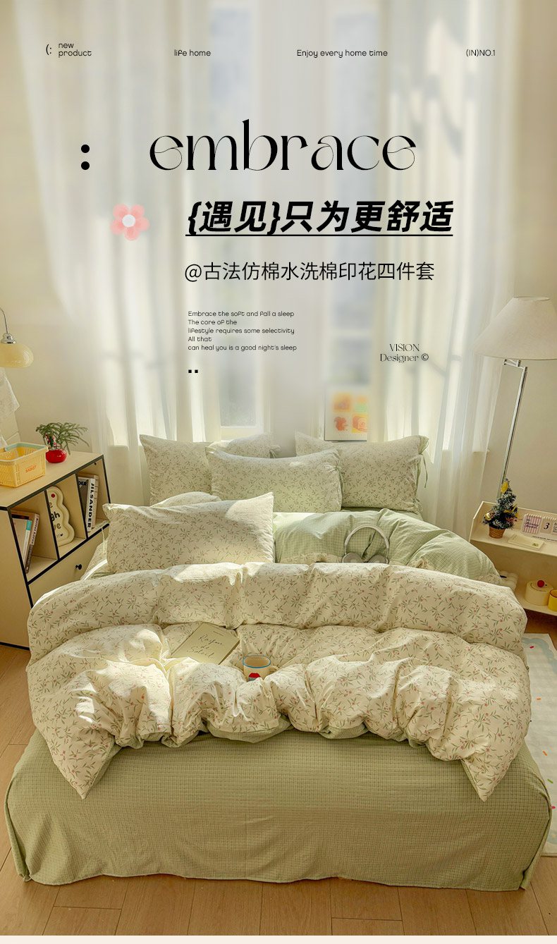 当前位置: 91家纺网 > 商品网购 > 床品套件 > 四件套 > 化纤普通四件套 > 金梦拉家纺 2026新款小清新绑带格纹碎花系列四件套-花园里系列 花园里-紫色蝴蝶结