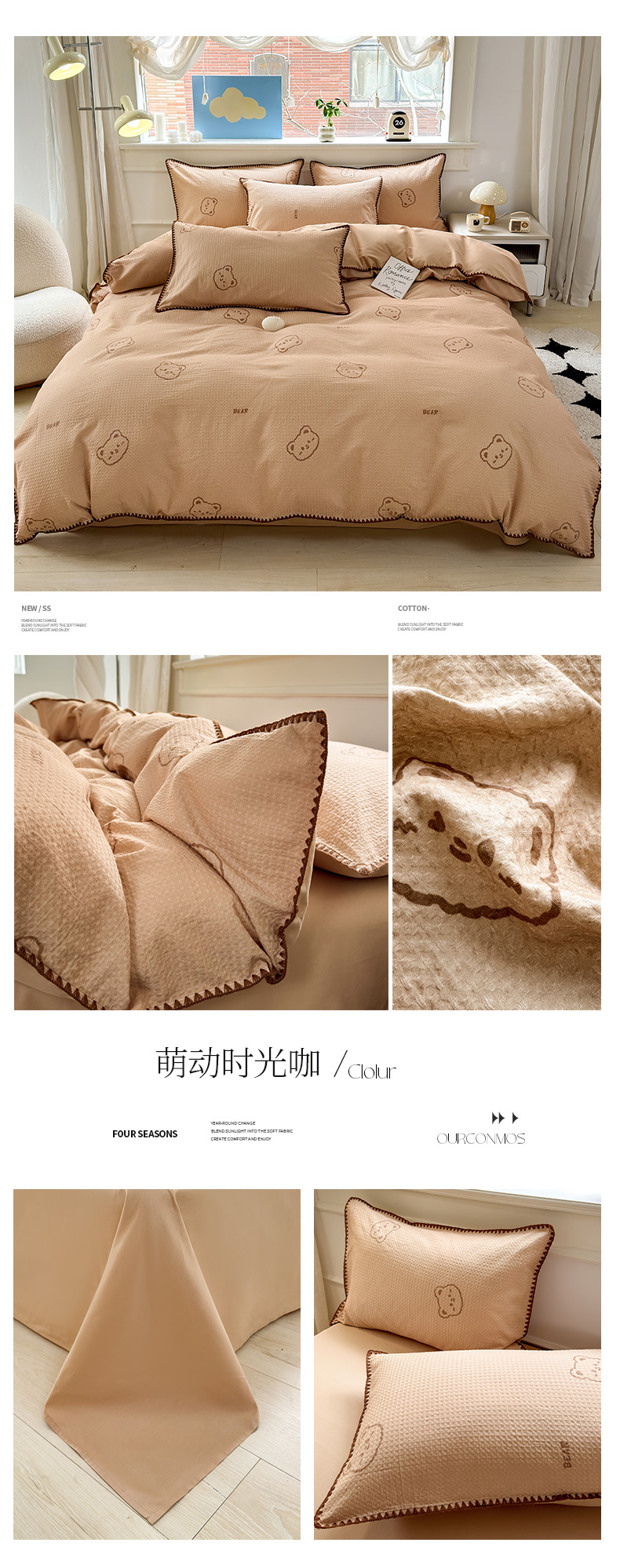 (总)雯雨家纺 2026新款里外全棉华夫格三角针夏被,简森蓝,瑞乐兰,苏潘达灰,瑞乐棕,萌动时光咖,萌动时光,欢乐派对,流白小狗-米