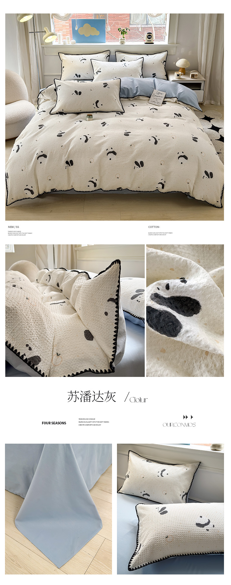当前位置: 91家纺网 > 商品网购 > 床上用品 > 被套 > 雯雨家纺 2026新款全棉华夫格三角针被套 苏潘达灰