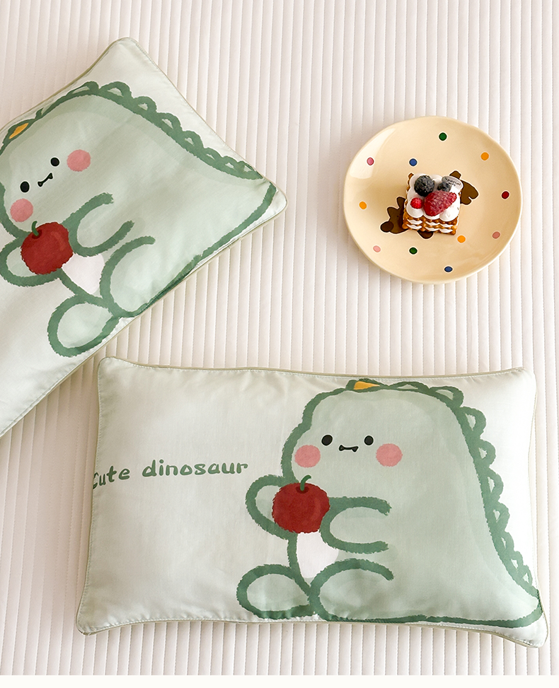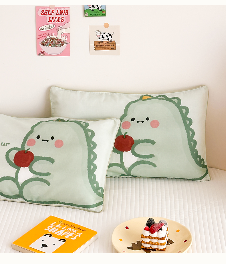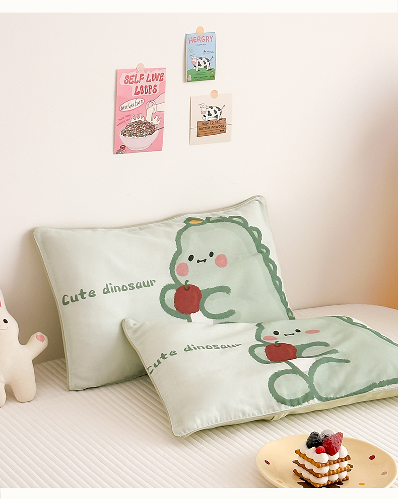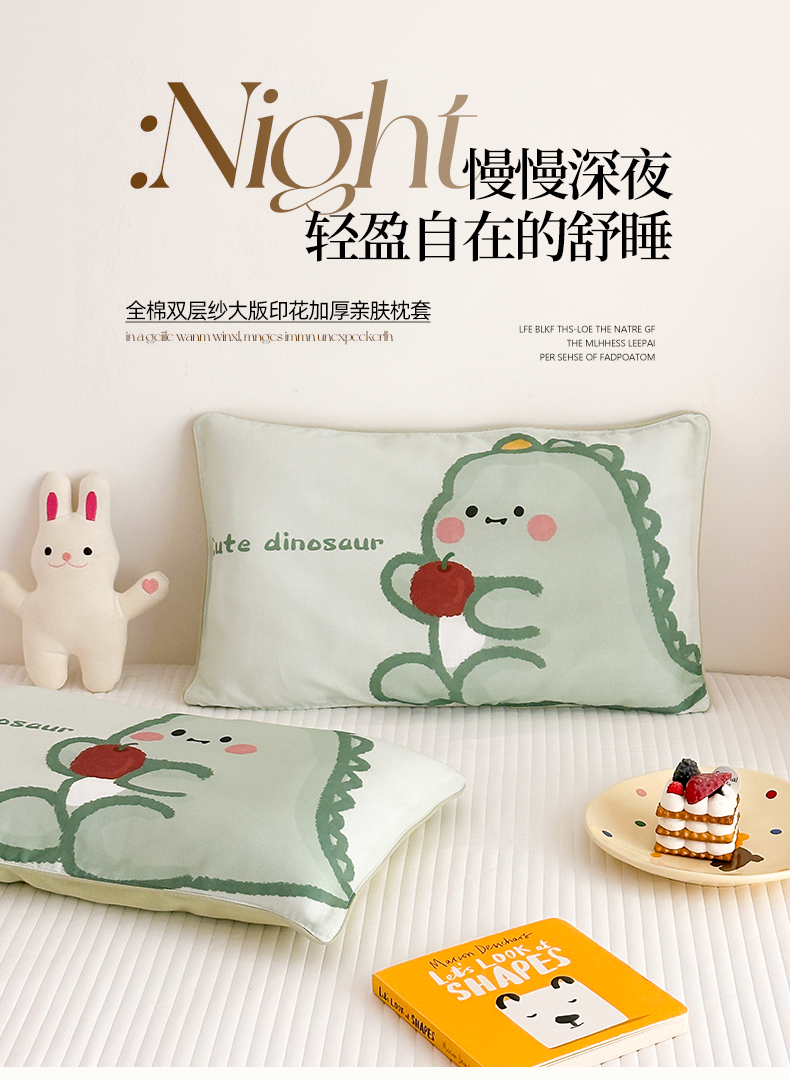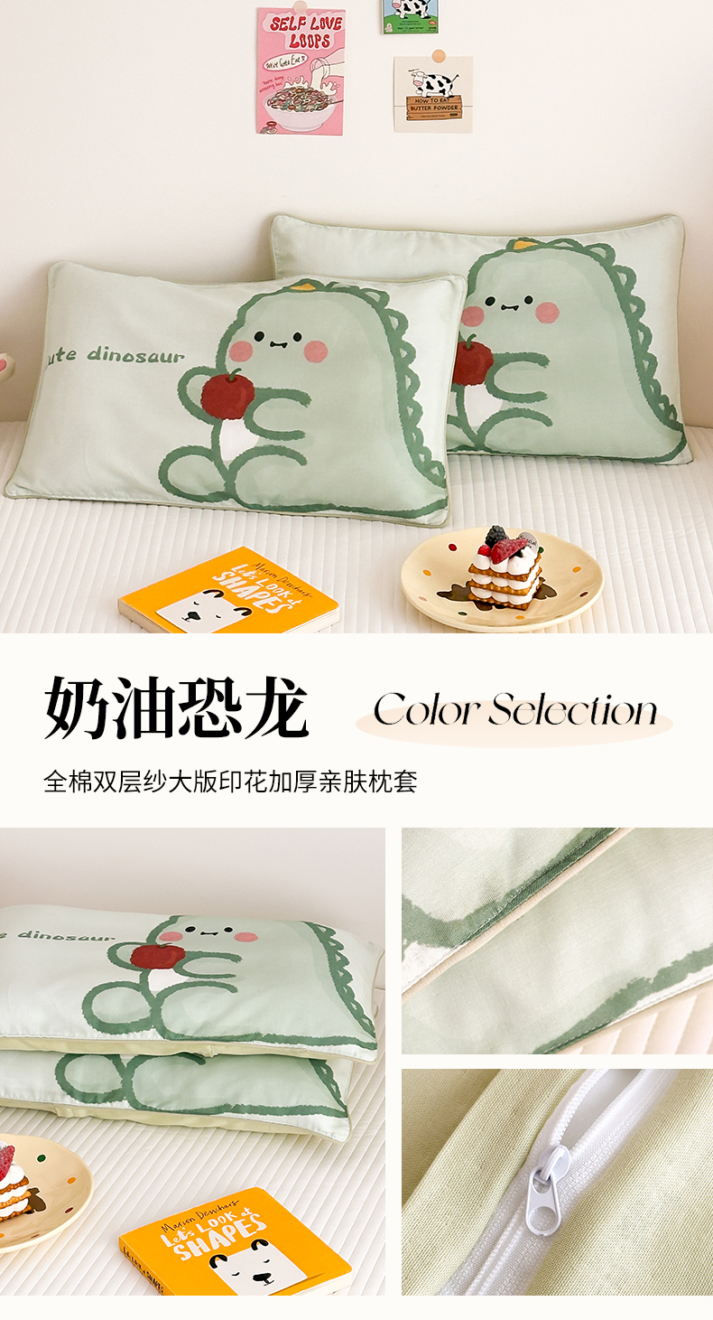 商品名称:嗨生活 2026新款全棉纯棉双层纱大版枕套儿童枕套幼儿园枕套枕芯单品枕套枕套单件 奶油恐龙